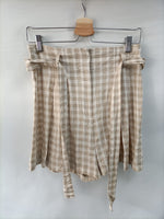 Short de cuadros beige y crudo de lino y algodón fluidos. No elástico con lazada. Cintura 36 cm Largo 42 cm