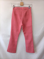 Pantalon de cuadros vichy rojo y blanco de tejido con textura. no elástico. Cintura 32 cm Largo 80 cm.