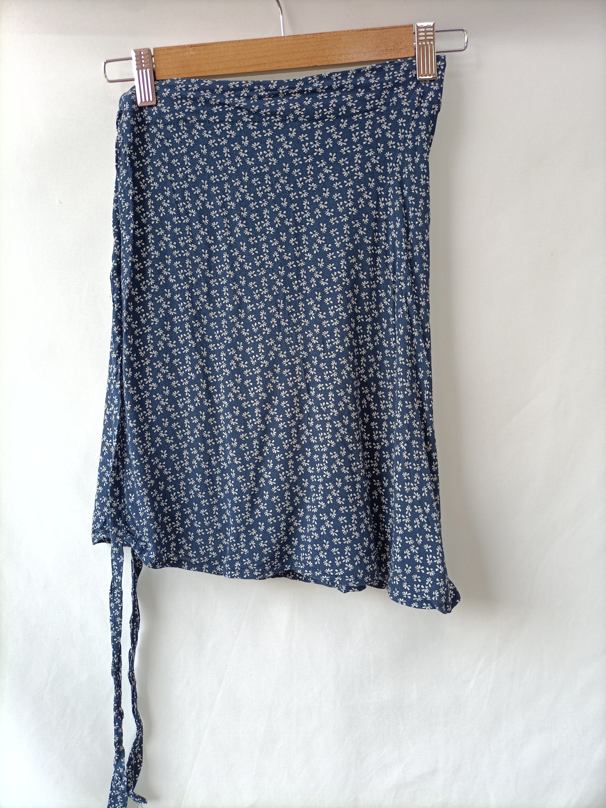 Falda cruzada tipo pareo azul y blanca. largo 48 cm