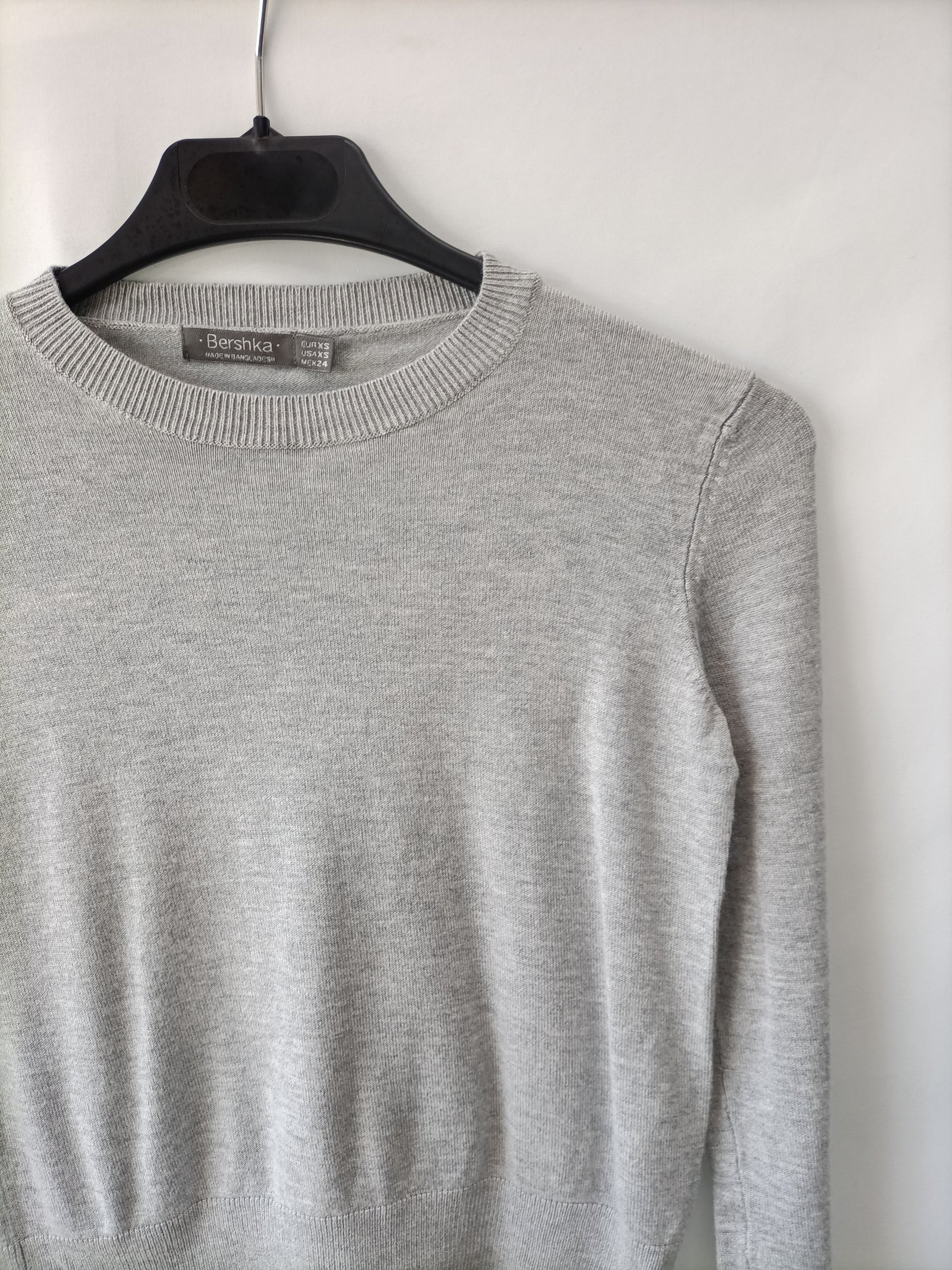 Jersey gris cortito y fino. Elastico. Largo 42 cm