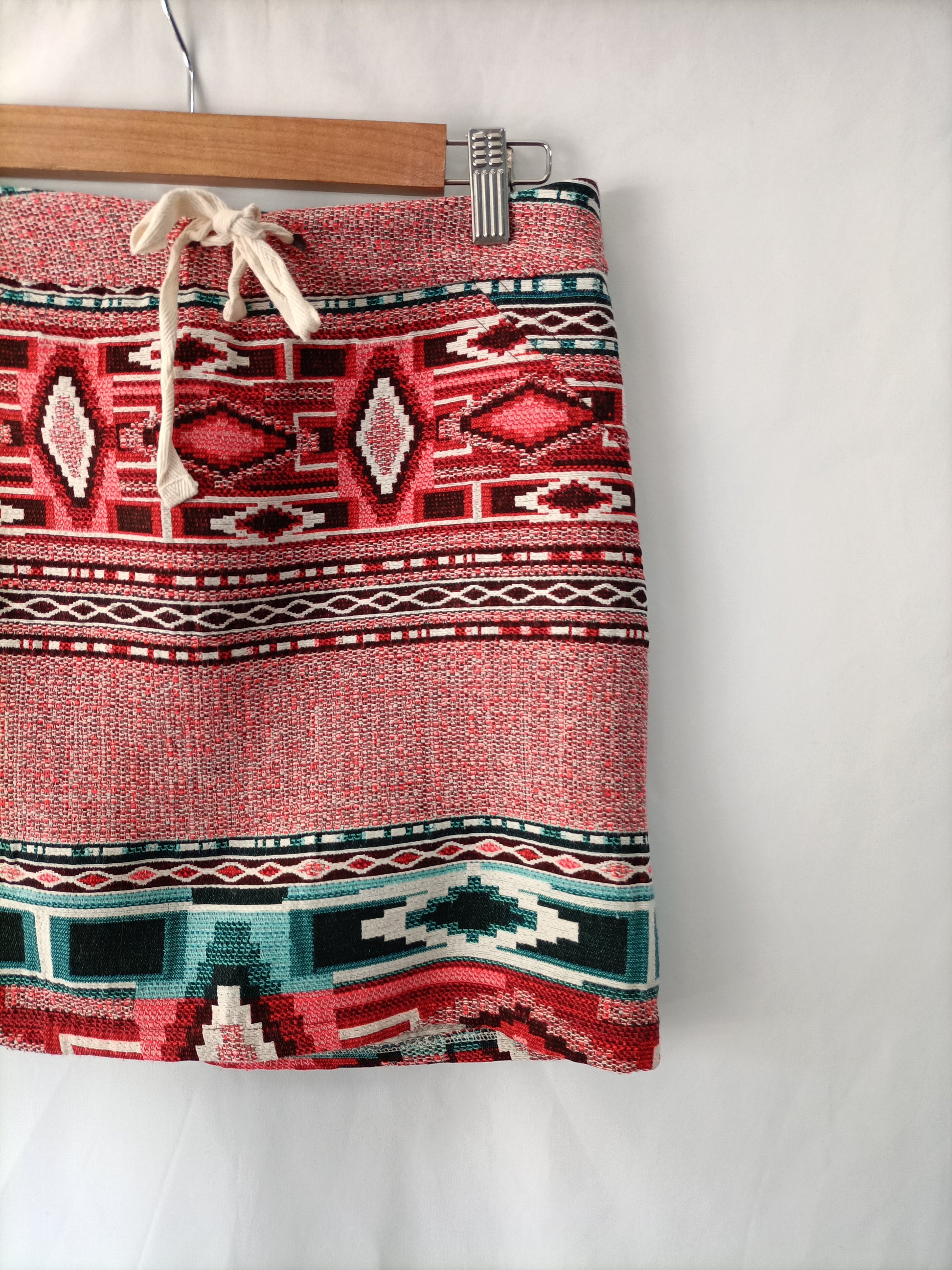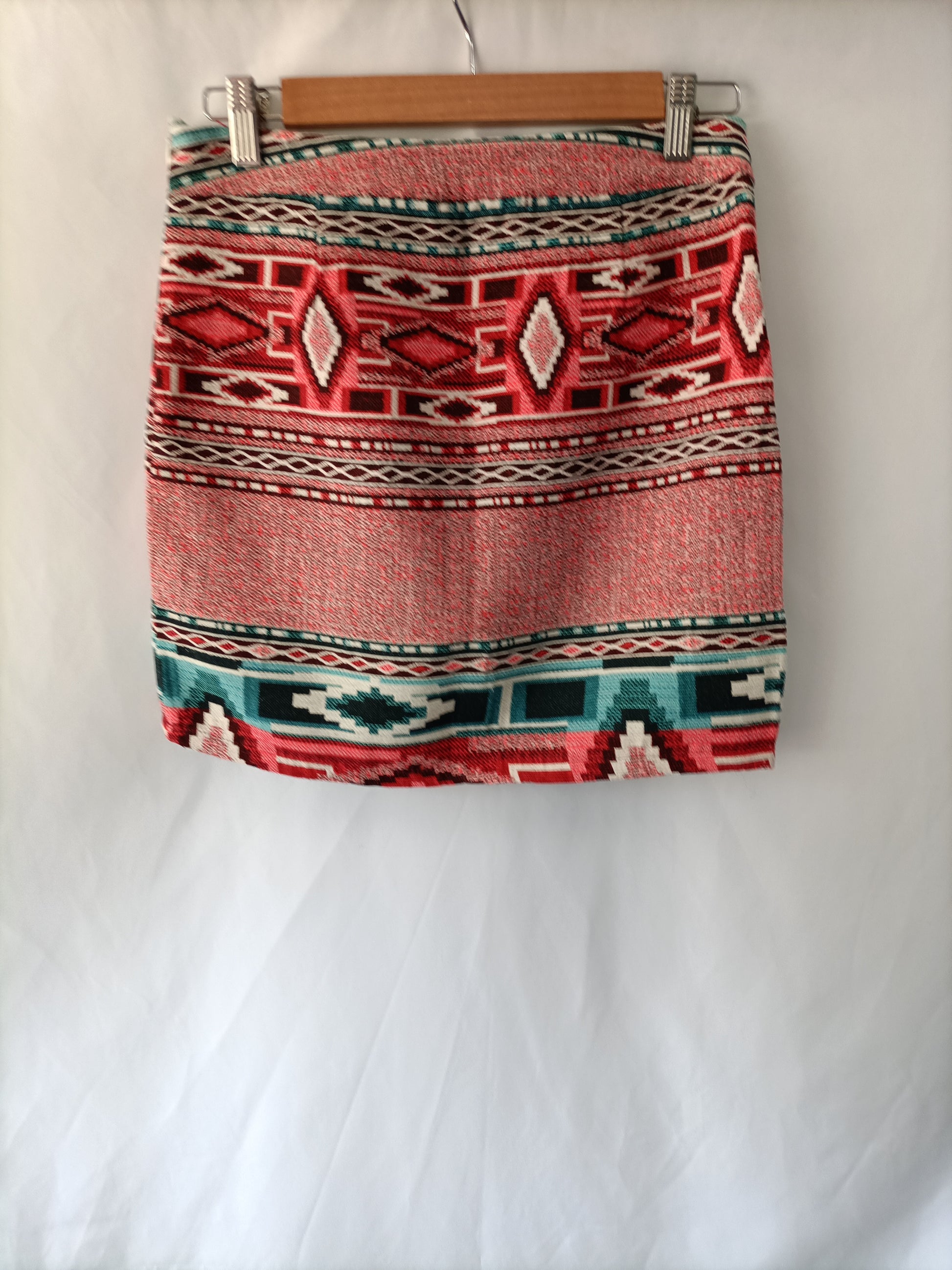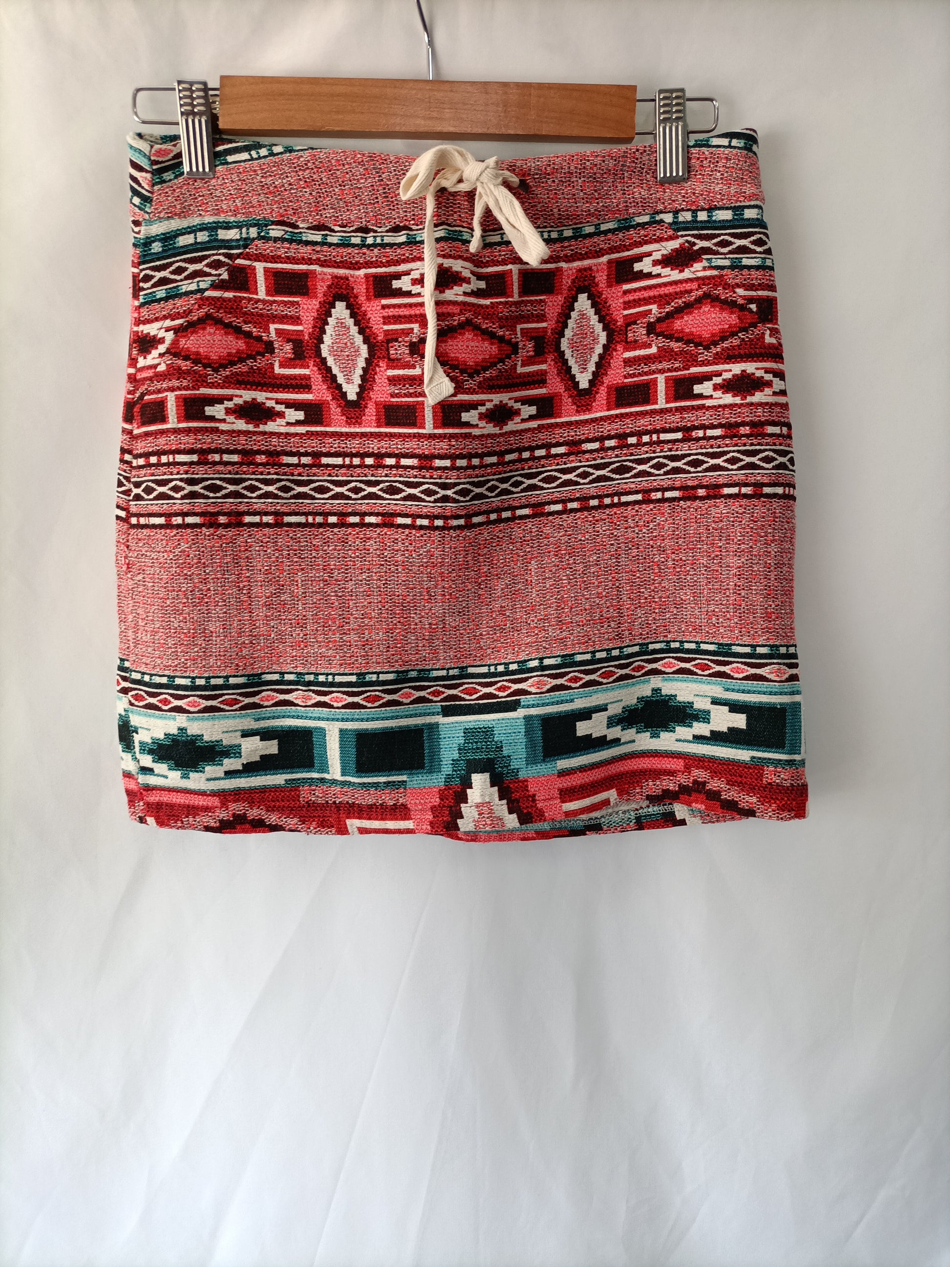 Falda corta con estampado étnico. No elástica. Cintura 36 cm largo 40 cm