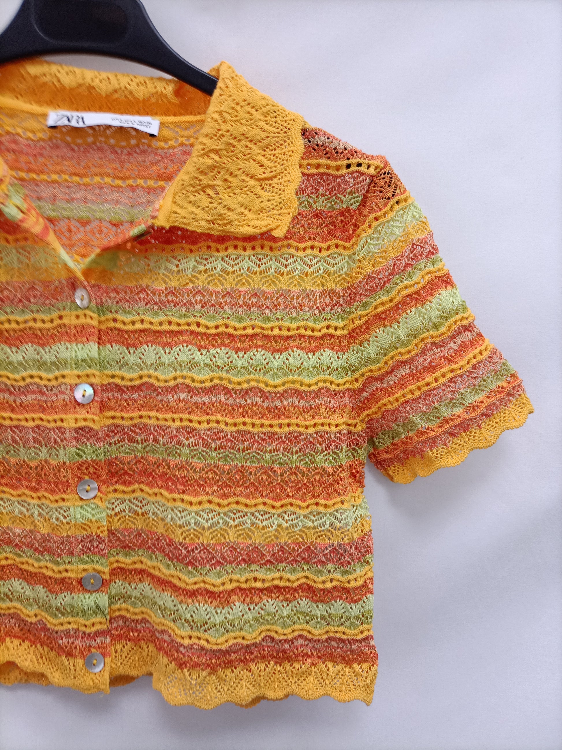 top croche de rayas en tonos naranjas. Largo 42 cm