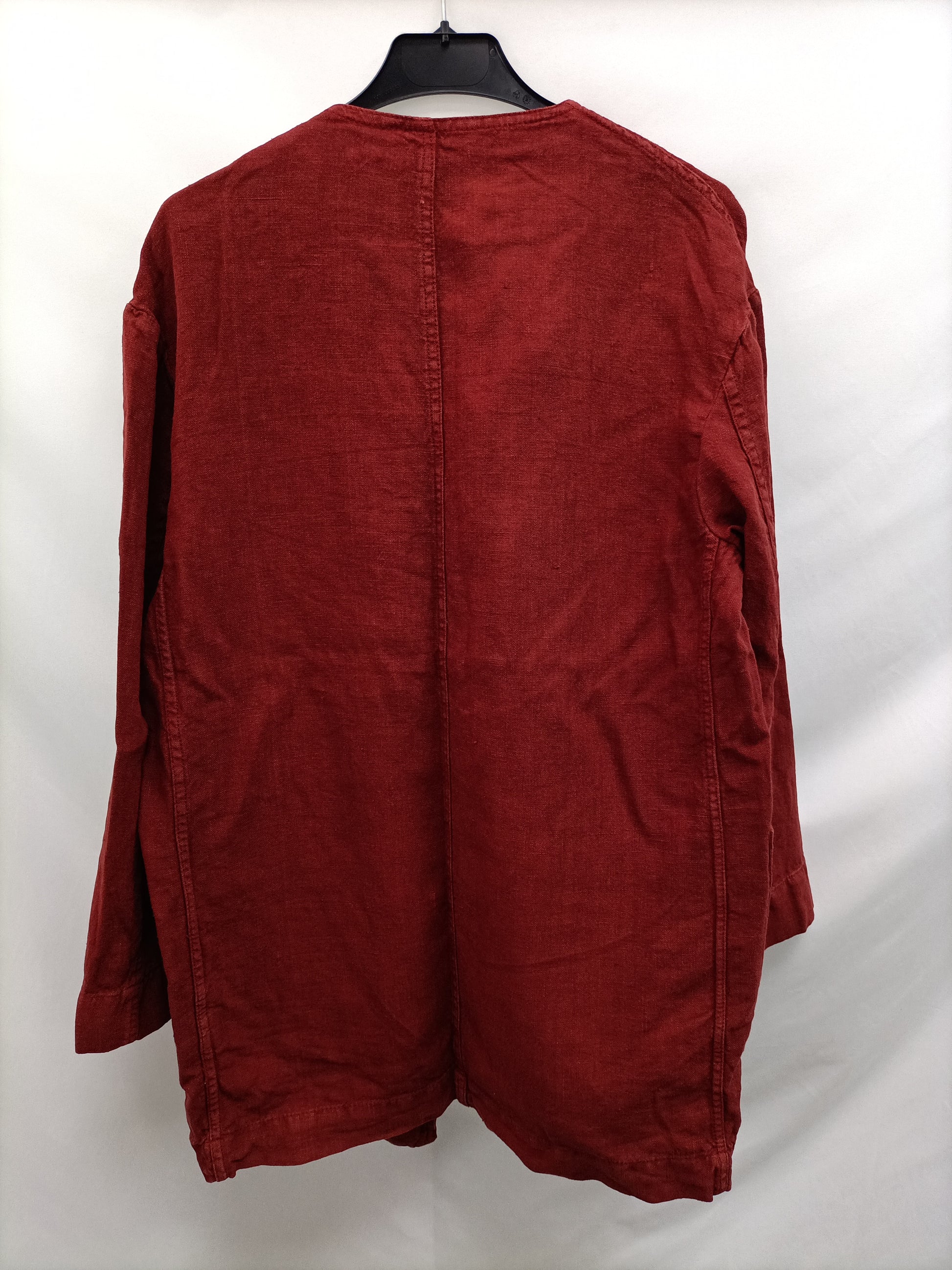ZARA. Chaqueta burdeos lino T.xs
