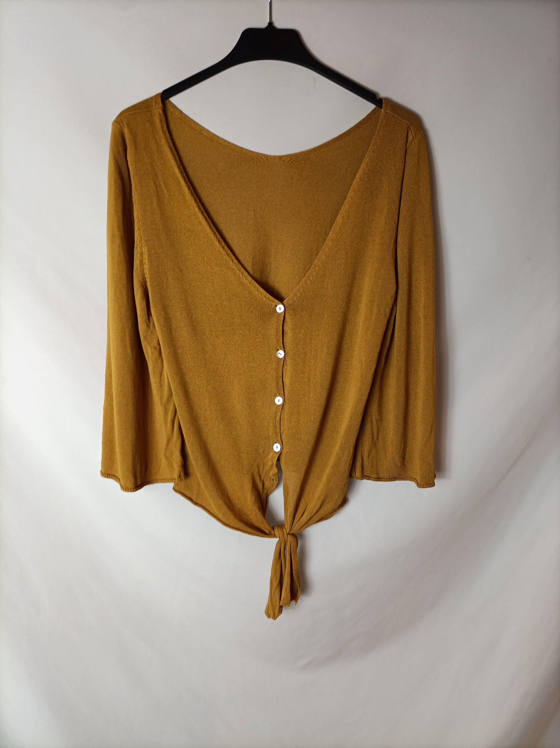 top de punto mostaza con botones y lazada delantera