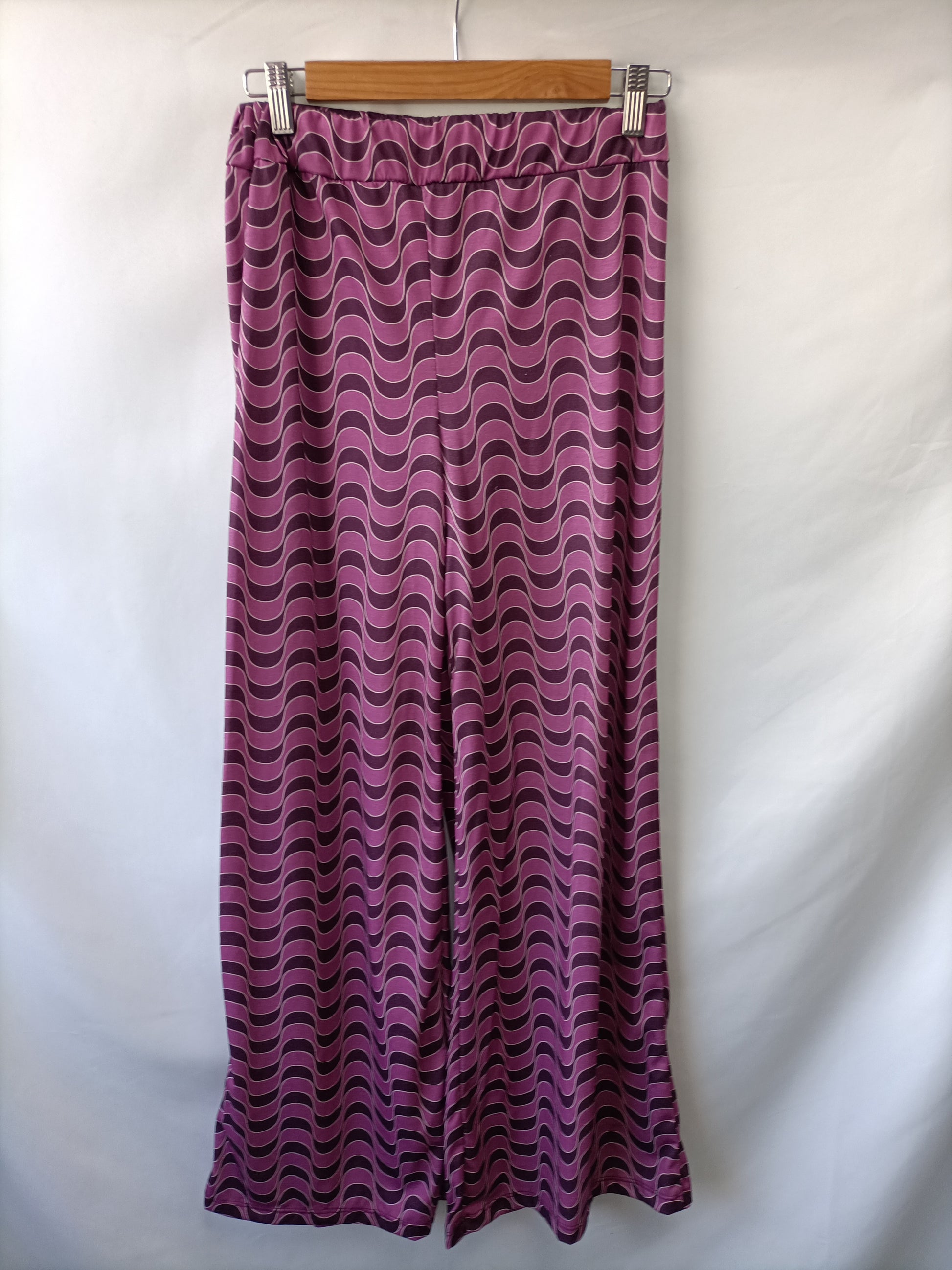Pantalón Estilo Palazzo fluido en tonos morados de rayas. Finito y elastico. Largo 104 cm. Total look con top