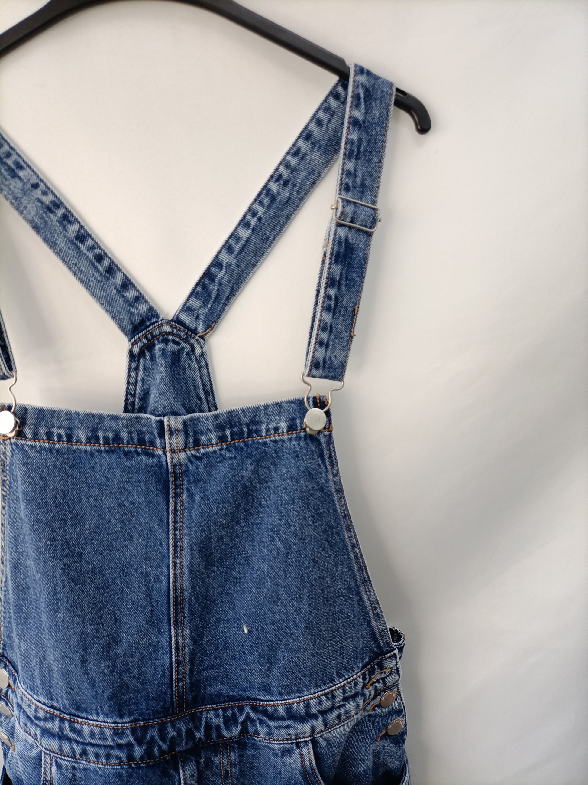 NUEVO CON ETIQUETA. Peto ancho denim no elástico con los tirantes ajustables. Cintura 46 cm largo 150 cm