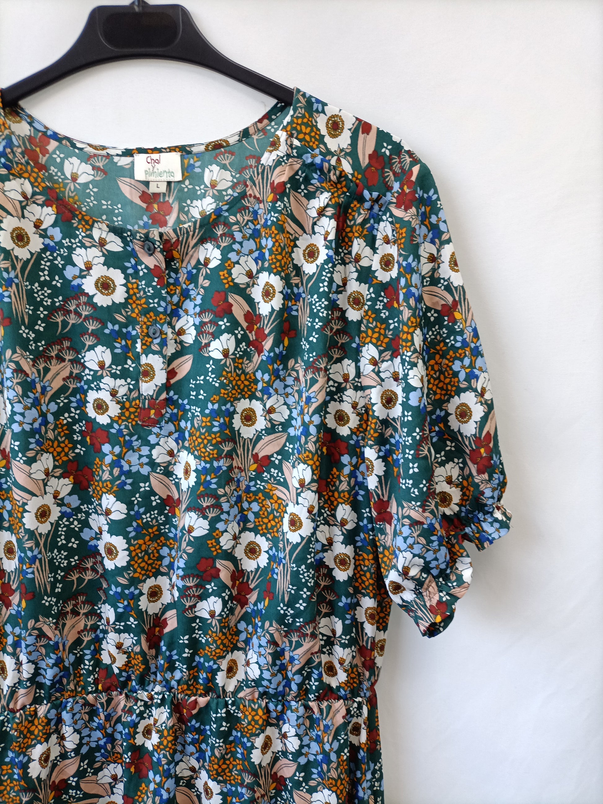 CHAL Y PIMIENTA. Vestido Verde flores T.l