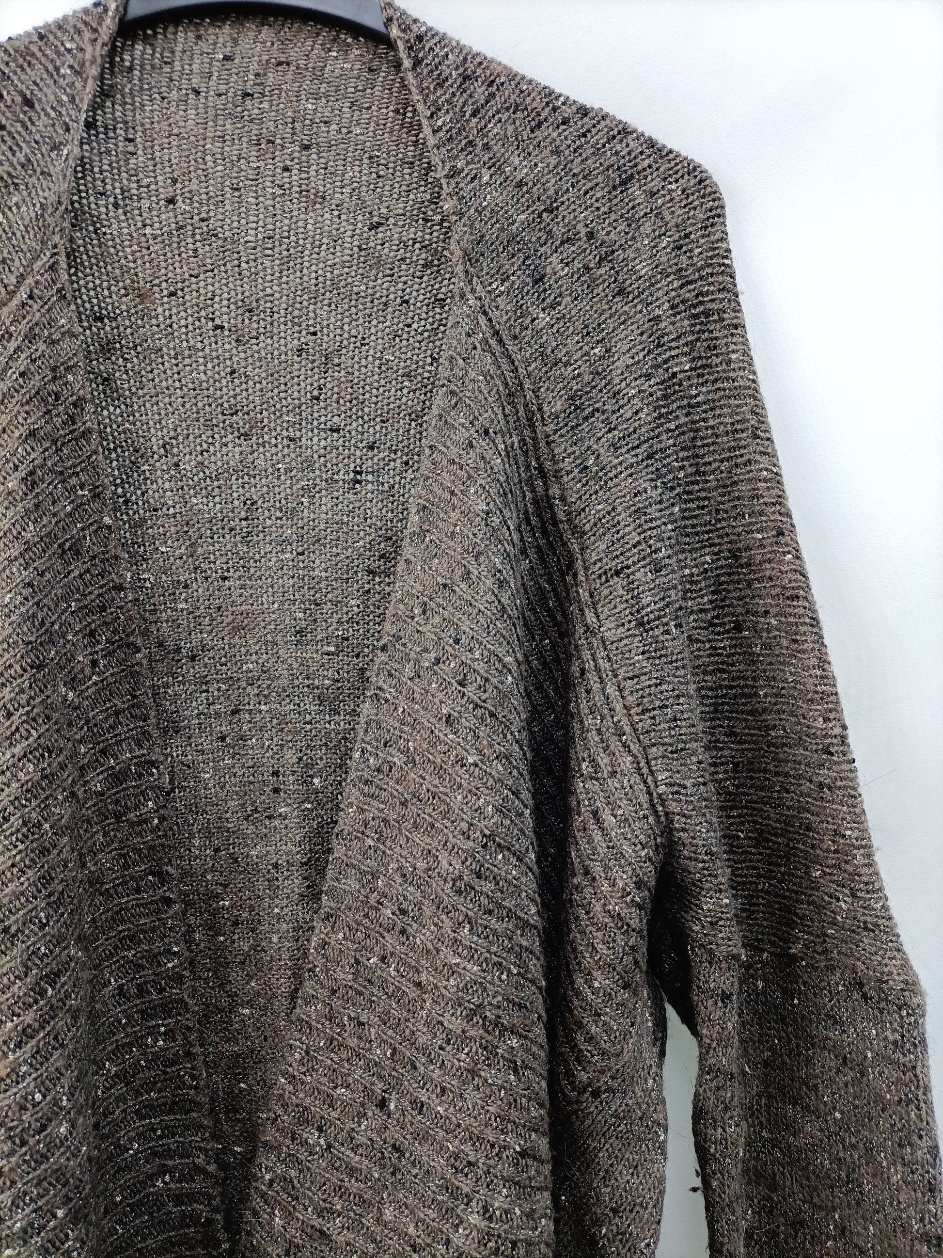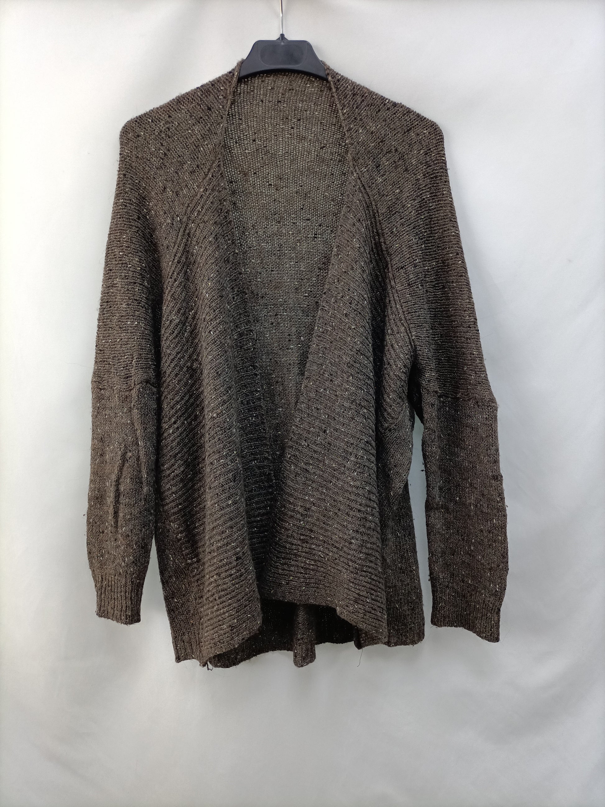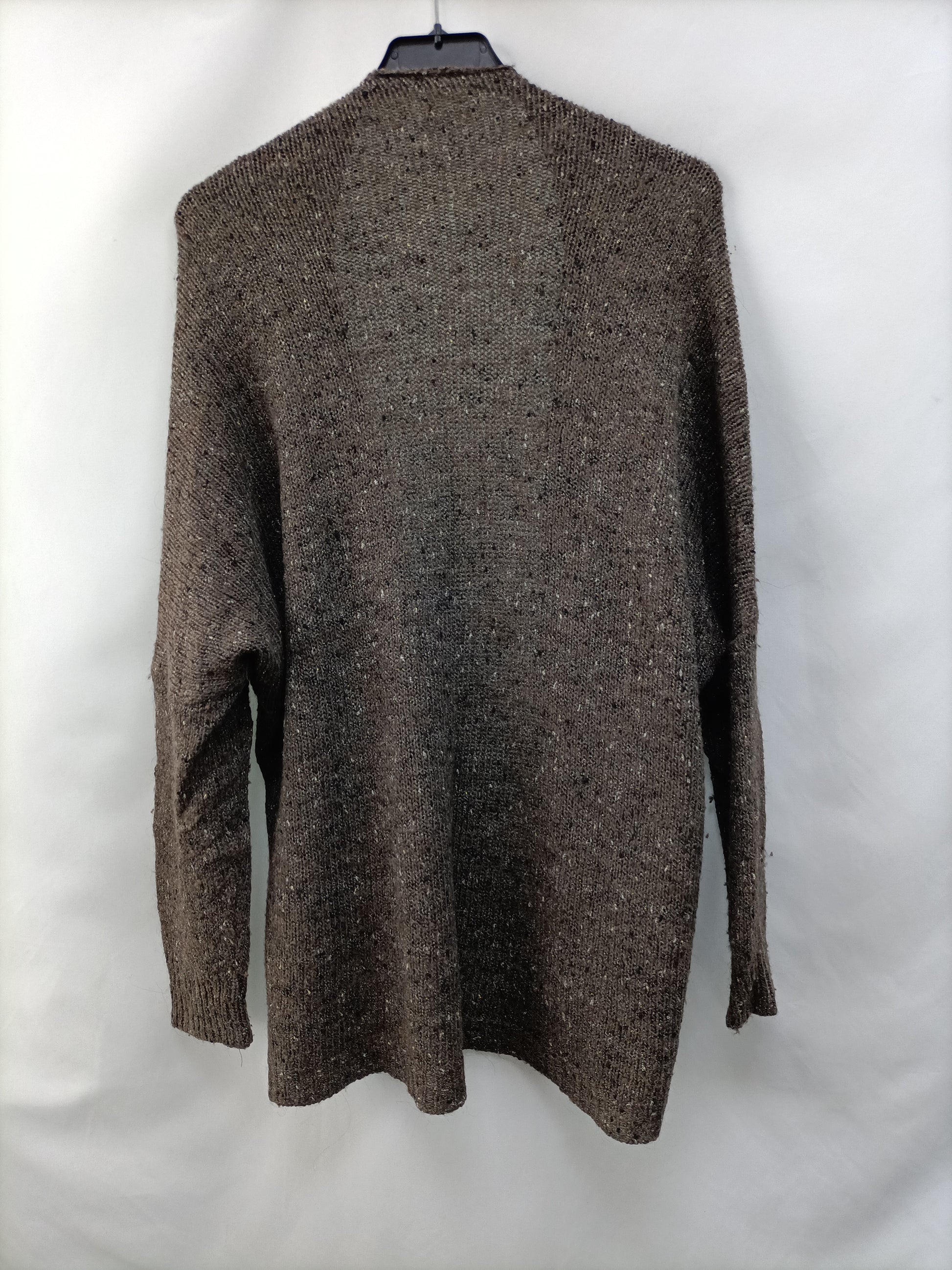 Cárdigan jaspeado en tonos marrones. No abrocha. Largo 76 cm