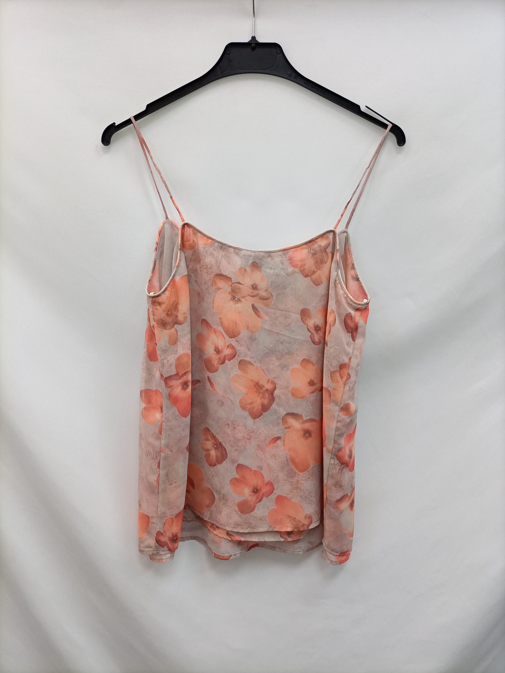 top estilo lencero color naranja palo con flores. De sisa a sisa 42 cm Largo 61 cm