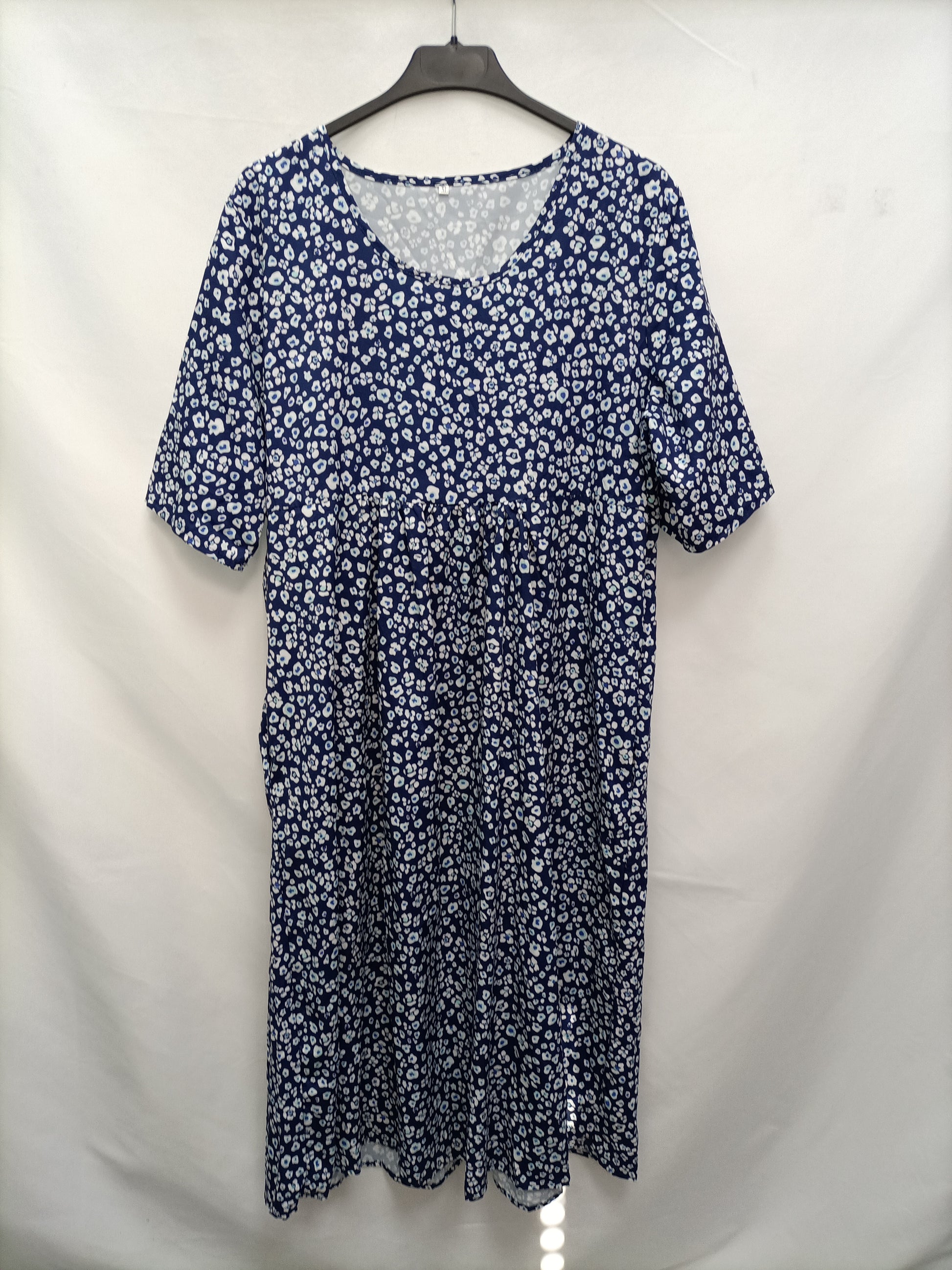 Vestido midi azul con flores blancas. Fluido y no elástico. De sisa a sisa 51 cm Largo 111 cm