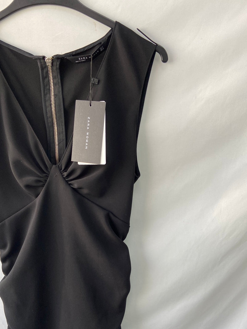 NUEVO CON ETIQUETA. Vetido midi negro fruncido con volantesn. de sisa a sisa 35 cm Largo 105 cm