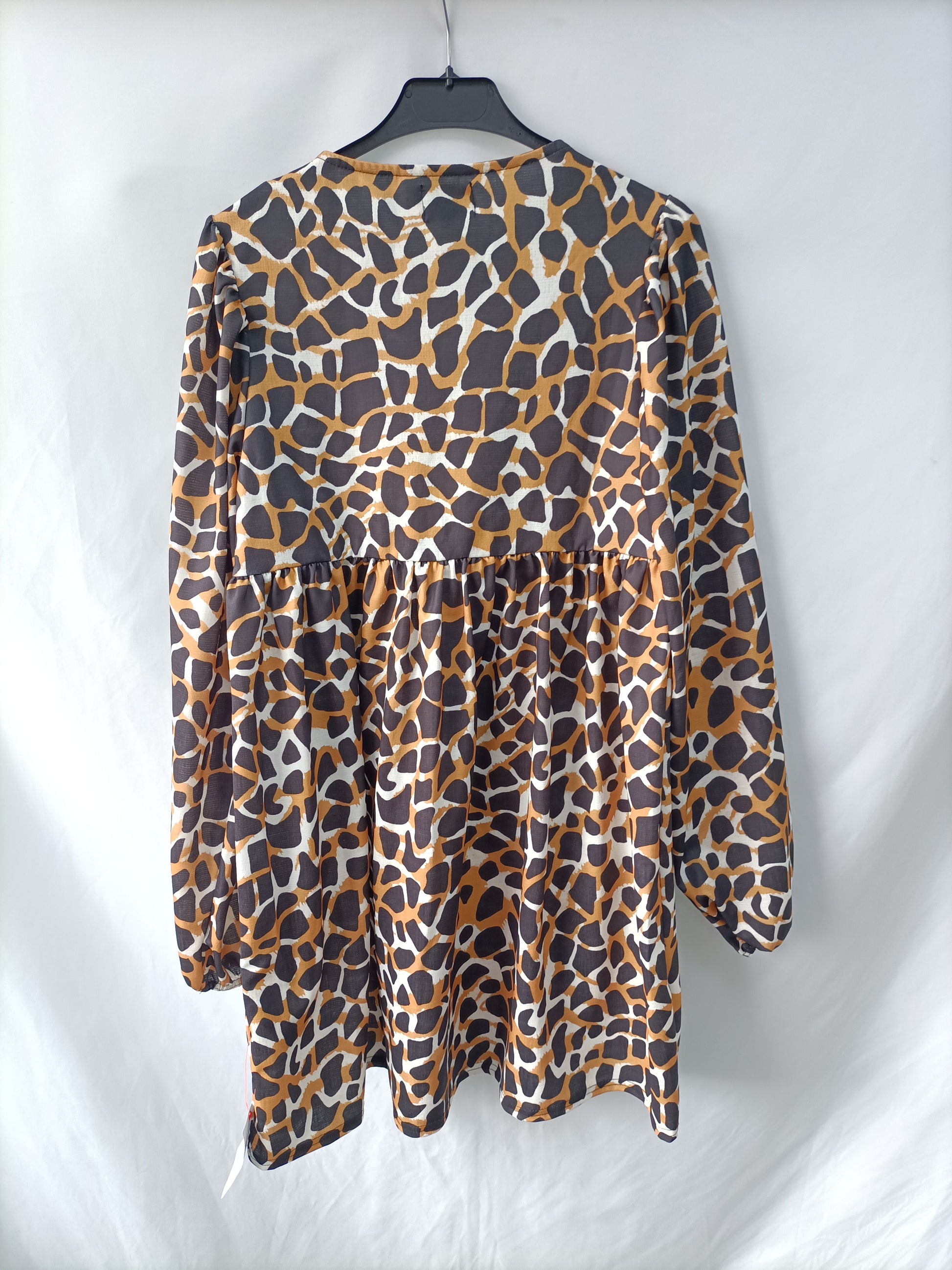 NUEVO CON ETIQUETA. Vestido corto a fluido con estampado print. Mangas ligeramente Abullonadas. elástico largo 86 cm
