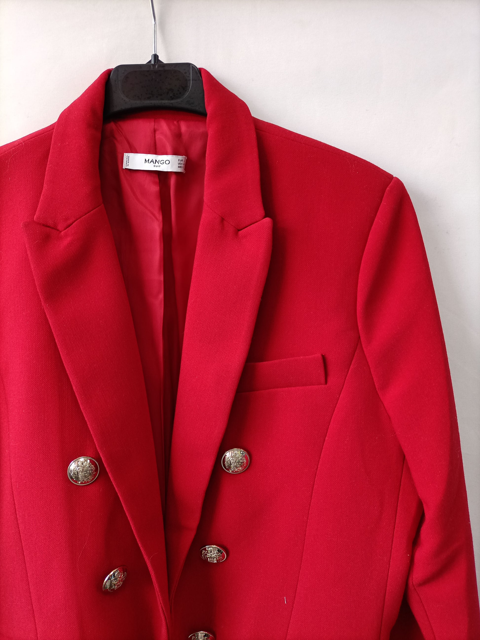 Blazer roja con lasangas Acampanadas y abiertas. Botones plateados. de sisa a sisa 48 cm largo 58 cm