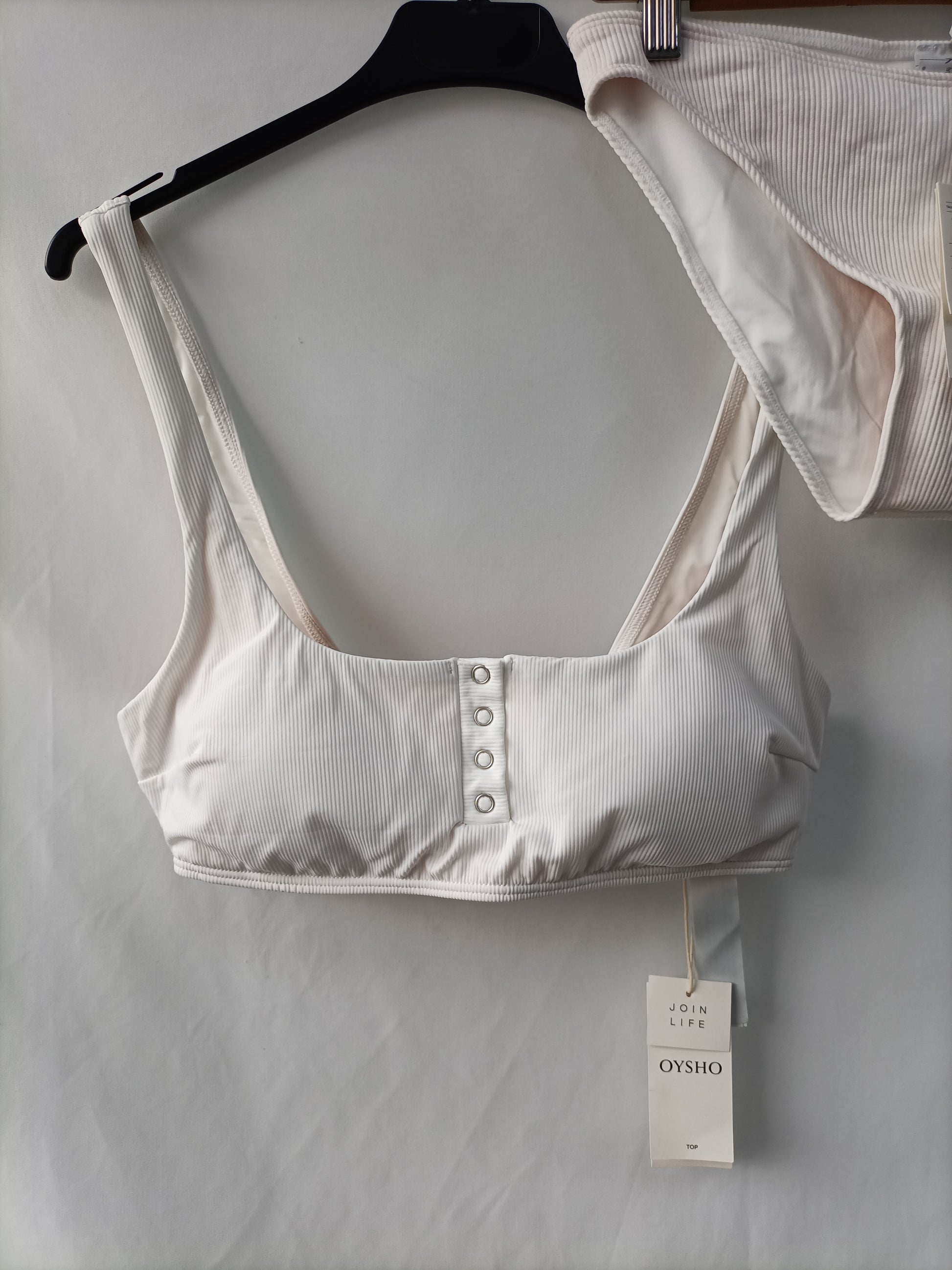 NUEVO CON ETIQUETA. Bikini blanco de tejido rayado