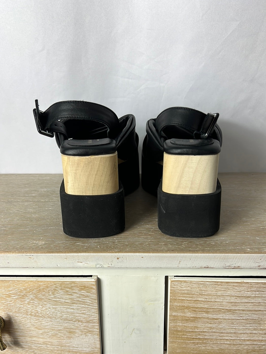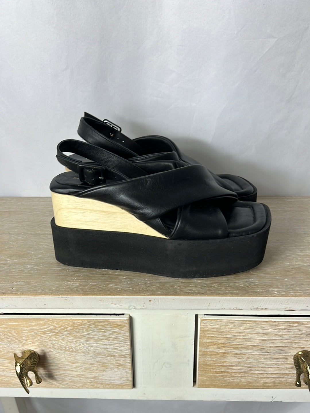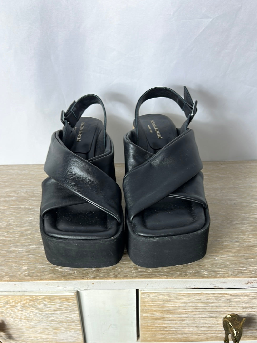 PALOMA BARCELÓ. Plataformas tira cruzada negra. T 39