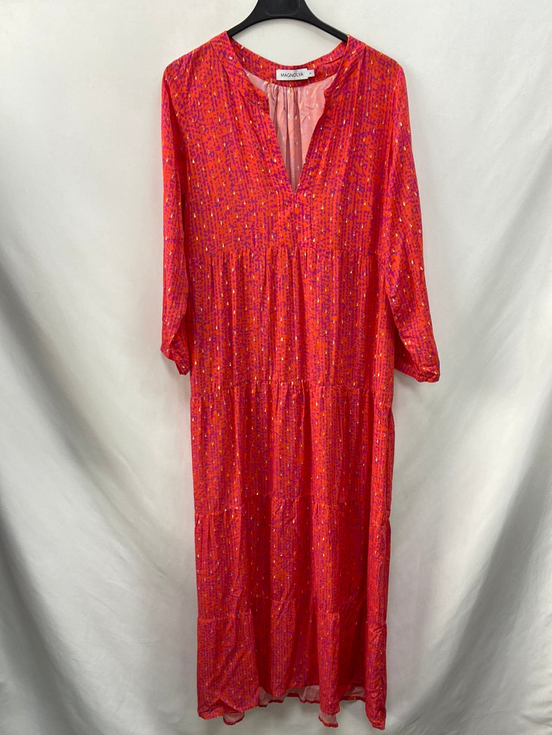 Vestido largo fluido con estilo volantes. no elástico. de sisa a sisa 51 cm largo 133cm. tiene alguna manchita