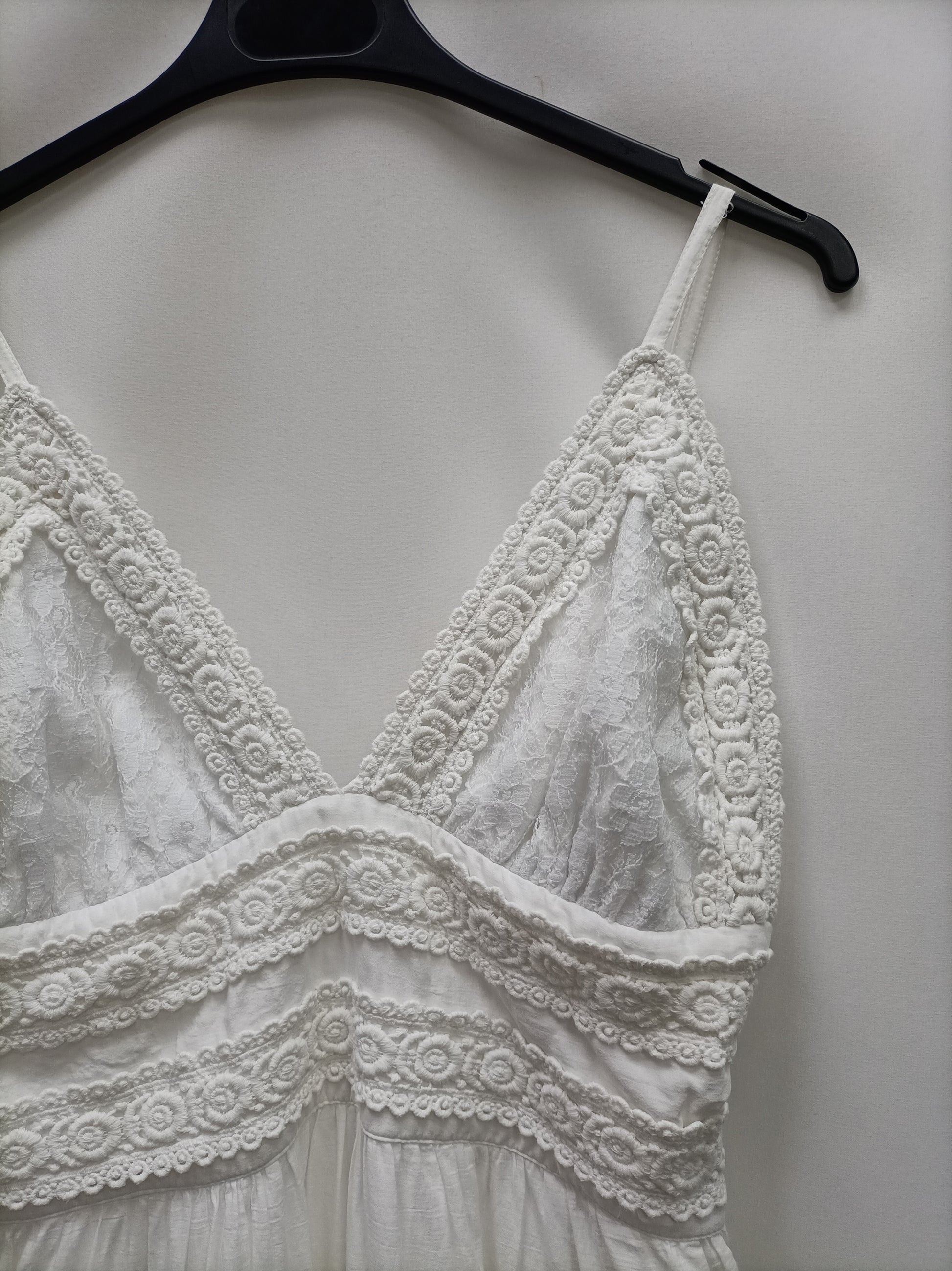 Vestido blanco con detalles de encaje. De sisa a sisa 37 cm largo 142 cm