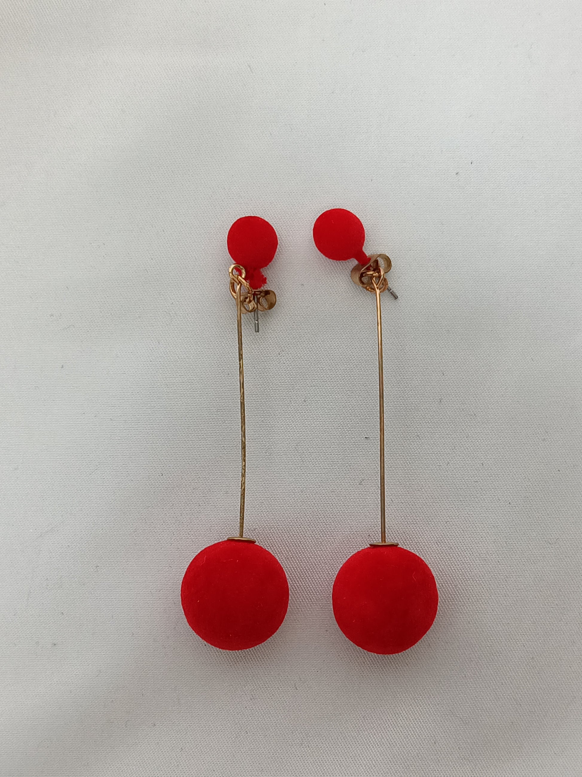 NUEVO CON ETIQUETA. Pendientes largos dorados con dos bolas rojas