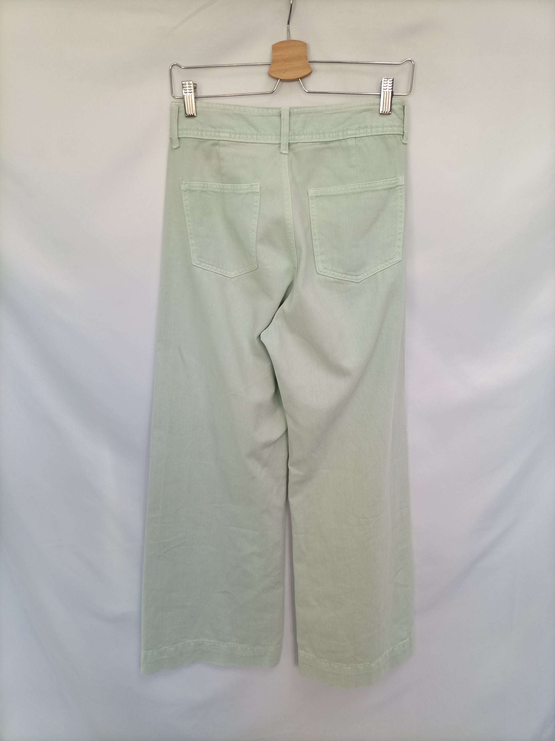 Pantalón verde palo denim estilo culotte. No elástico. Cintura 36 cm largo 107 cm