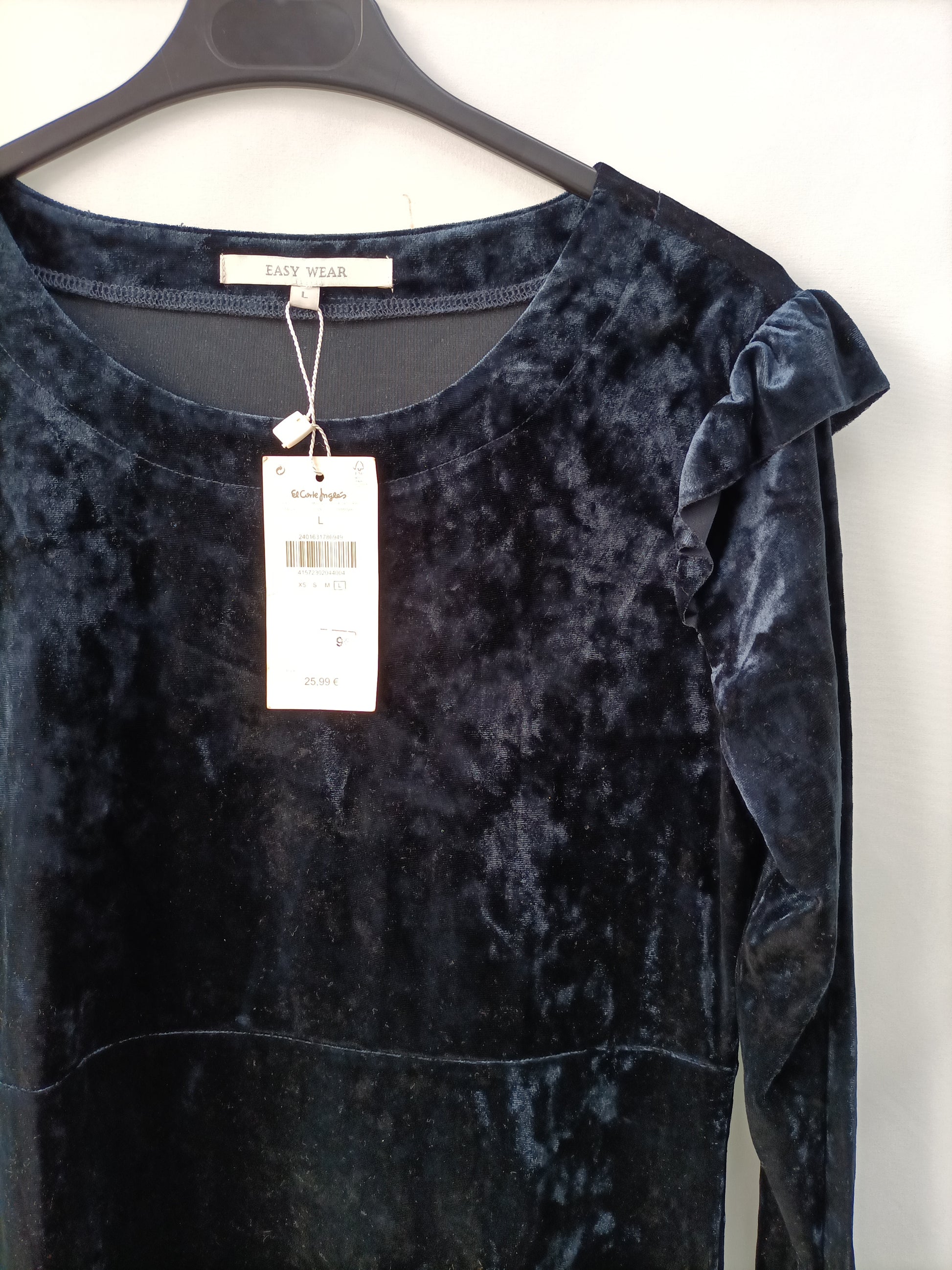 NUEVO CON ETIQUETA. Vestido corto azul terciopelo. Elastico. largo 74 cm
