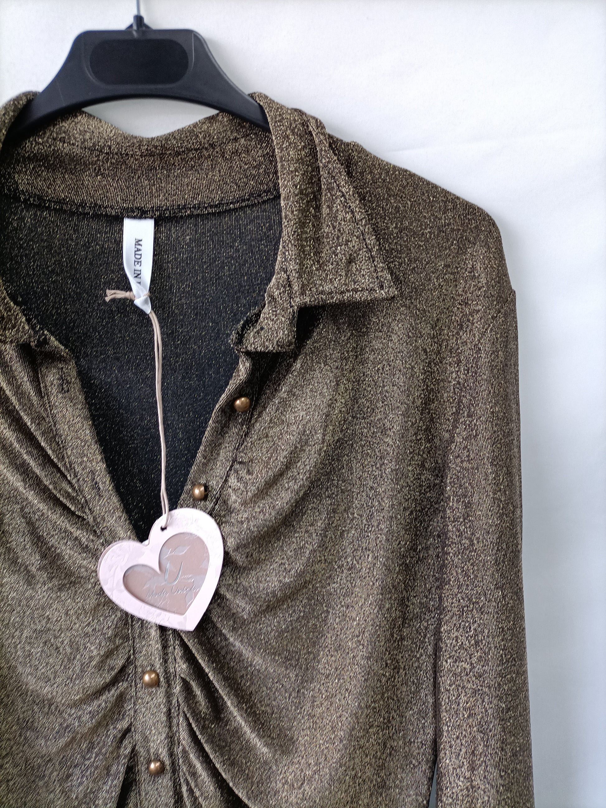 MODA ÚNICA. Top dorado Fruncido T.u(s)