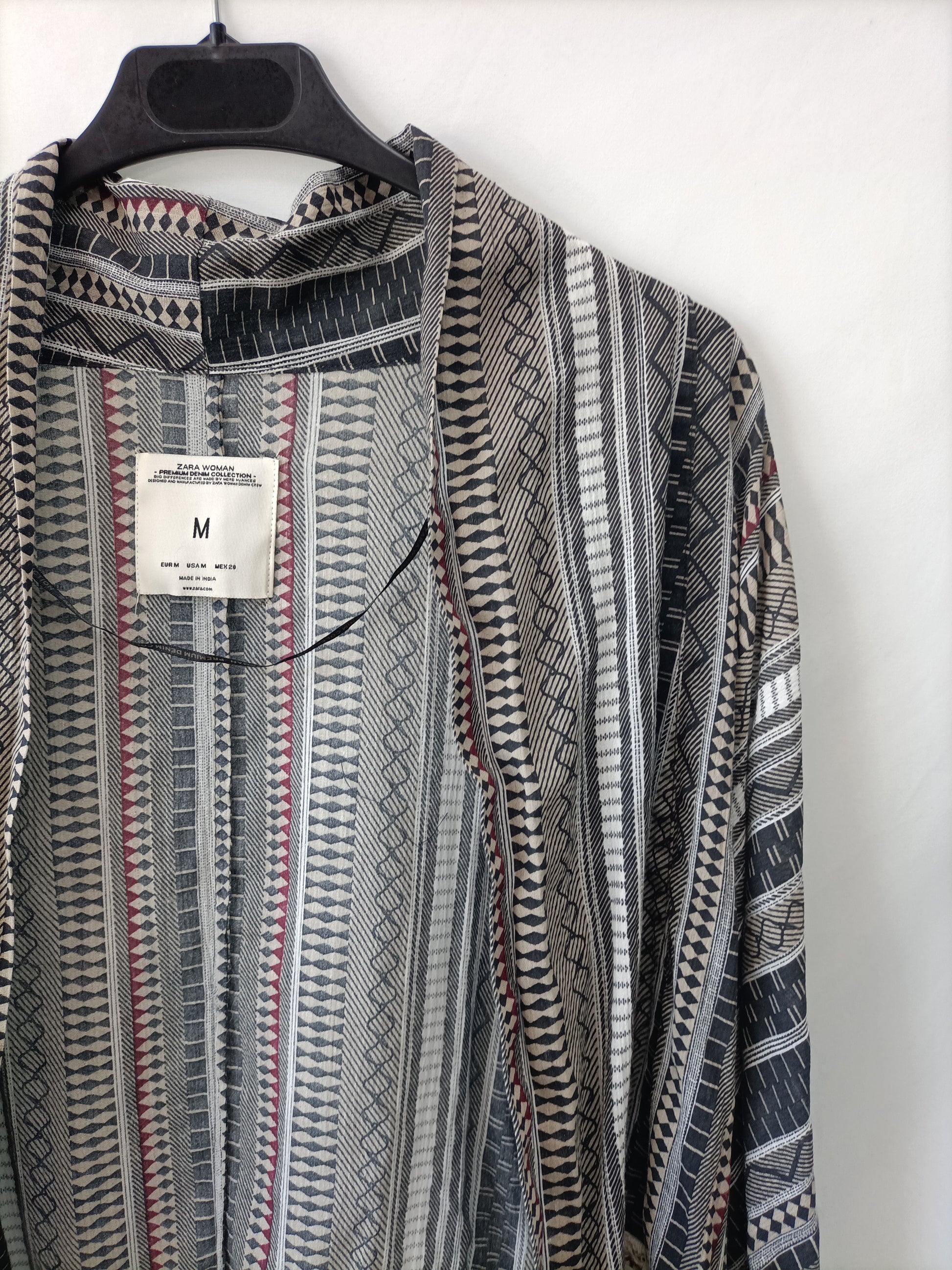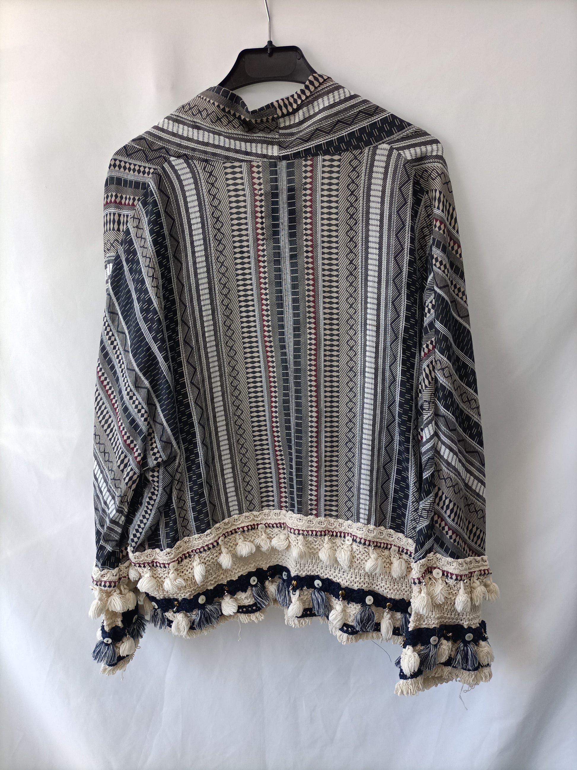 Kimono étnico nenctodos grises en borlas y abalorios. Largo 57 cm