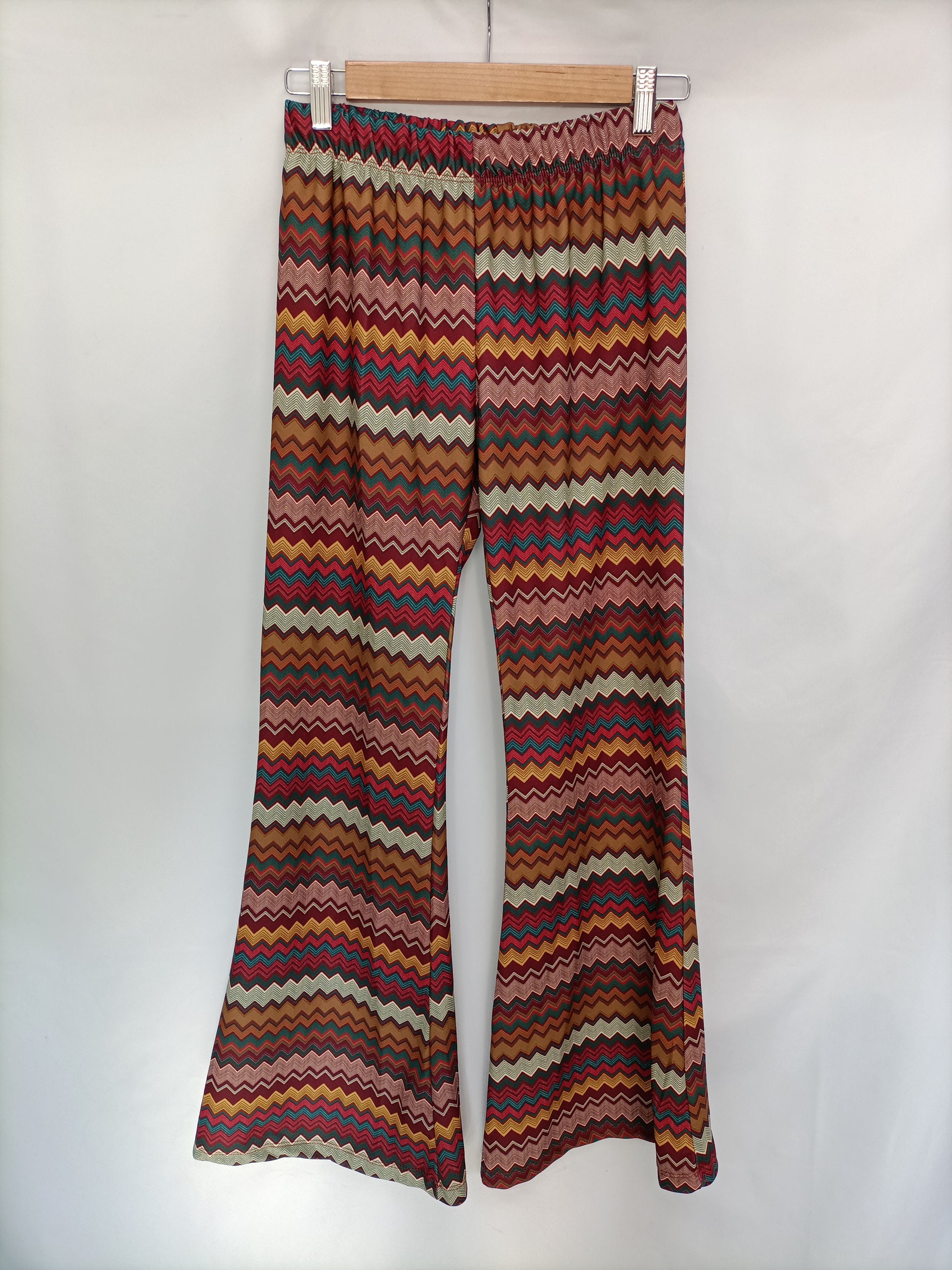 Pantalón elástico de rayas de colores con campana. Elastico. Largo 99 cm.