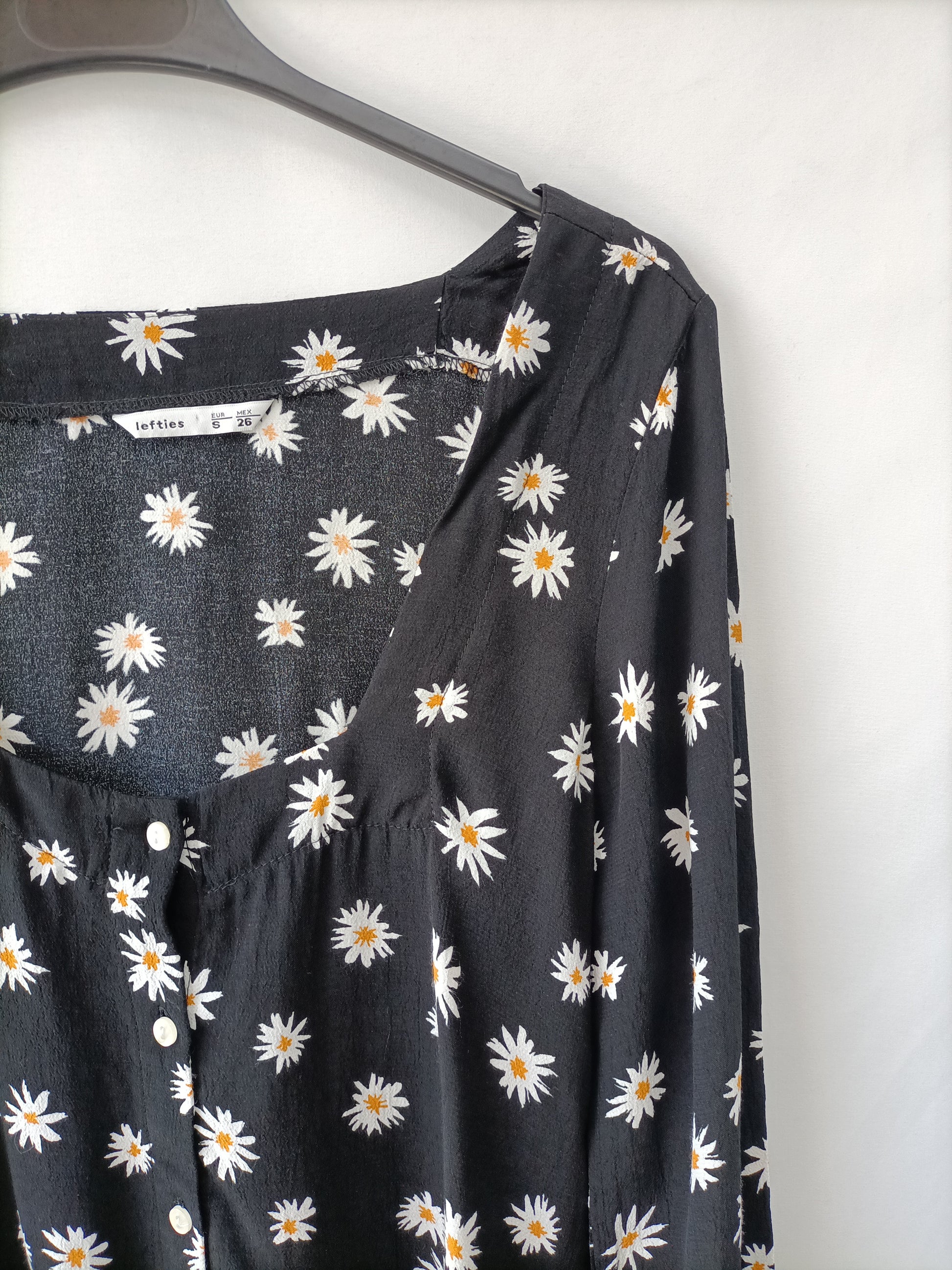 LEFTIES. Blusa negra margaritas T.s