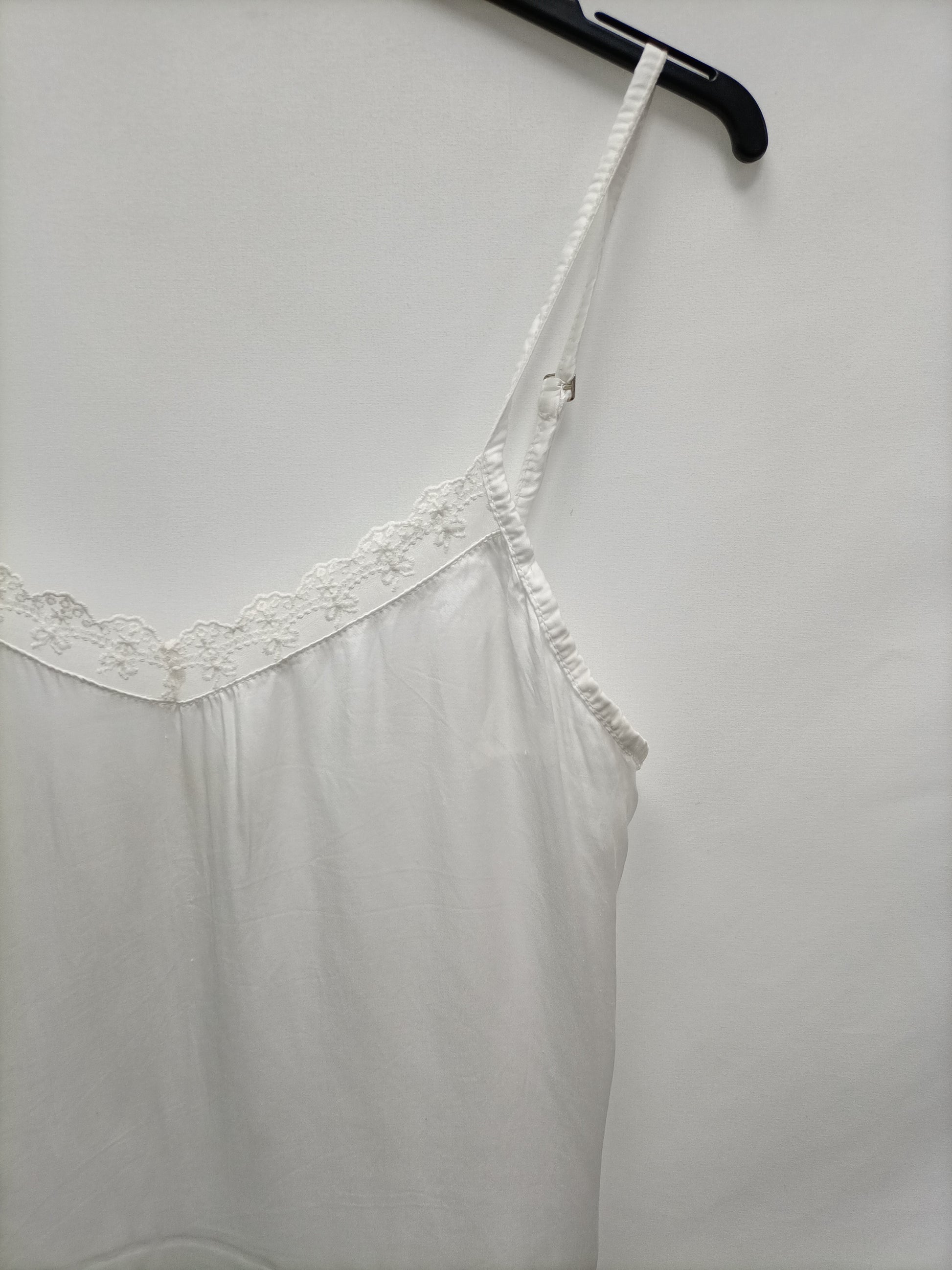Vestido/top blanco estilo lencero con detalles de encaje. Tirantes ajustables. De sisa a sisa 47 cm Largo 82 cm