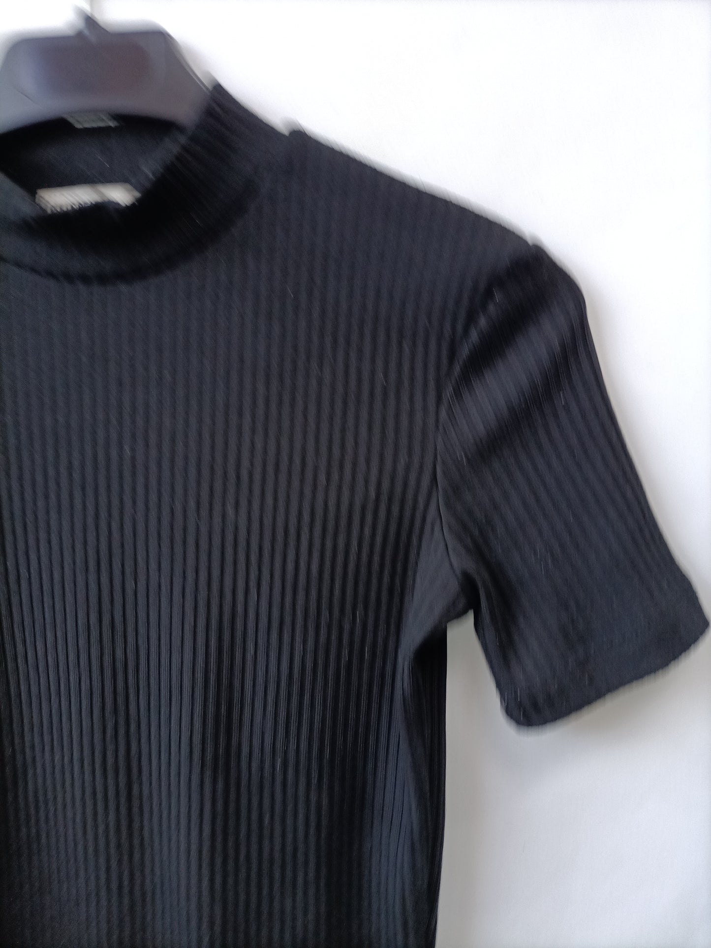 top negro canalé cuello perkins. largo 47 cm