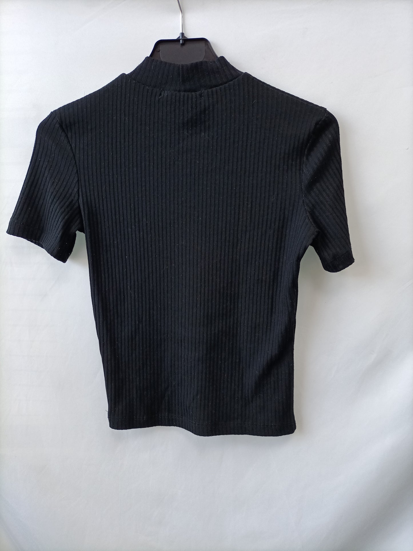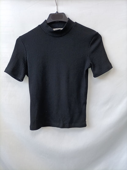 PULL&BEAR. Top negro canalé T.m