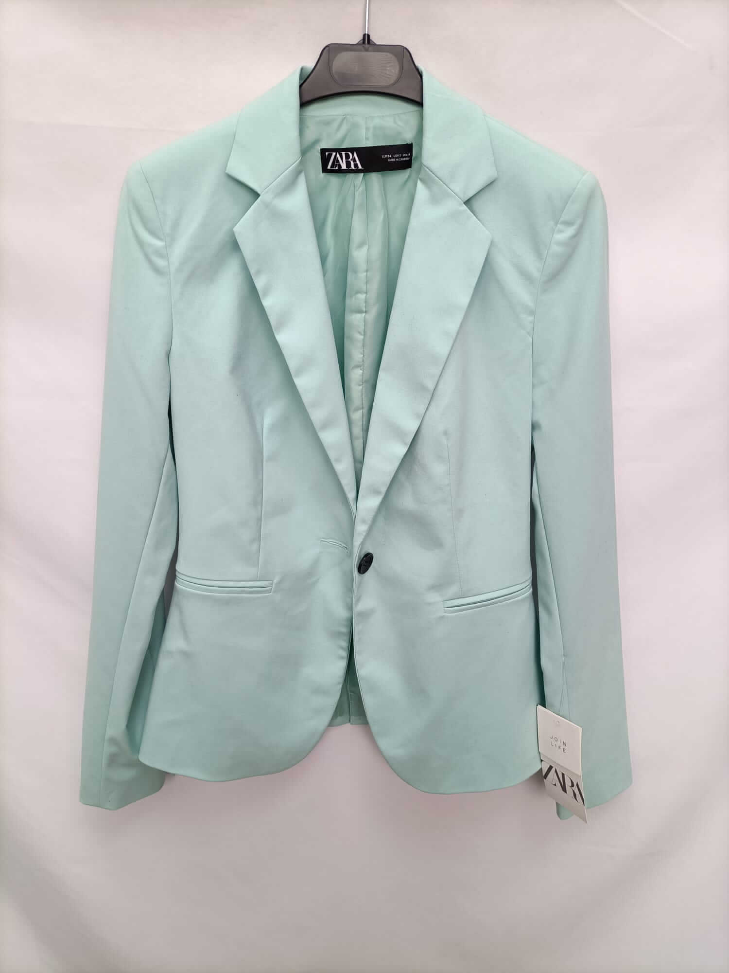 Zara. 34. NUEVO CON ETIQUETA. Blazer cortita verde agua. Entallada. No elástica. De sisa a sisa 40 cm largo 60cm. 29,99