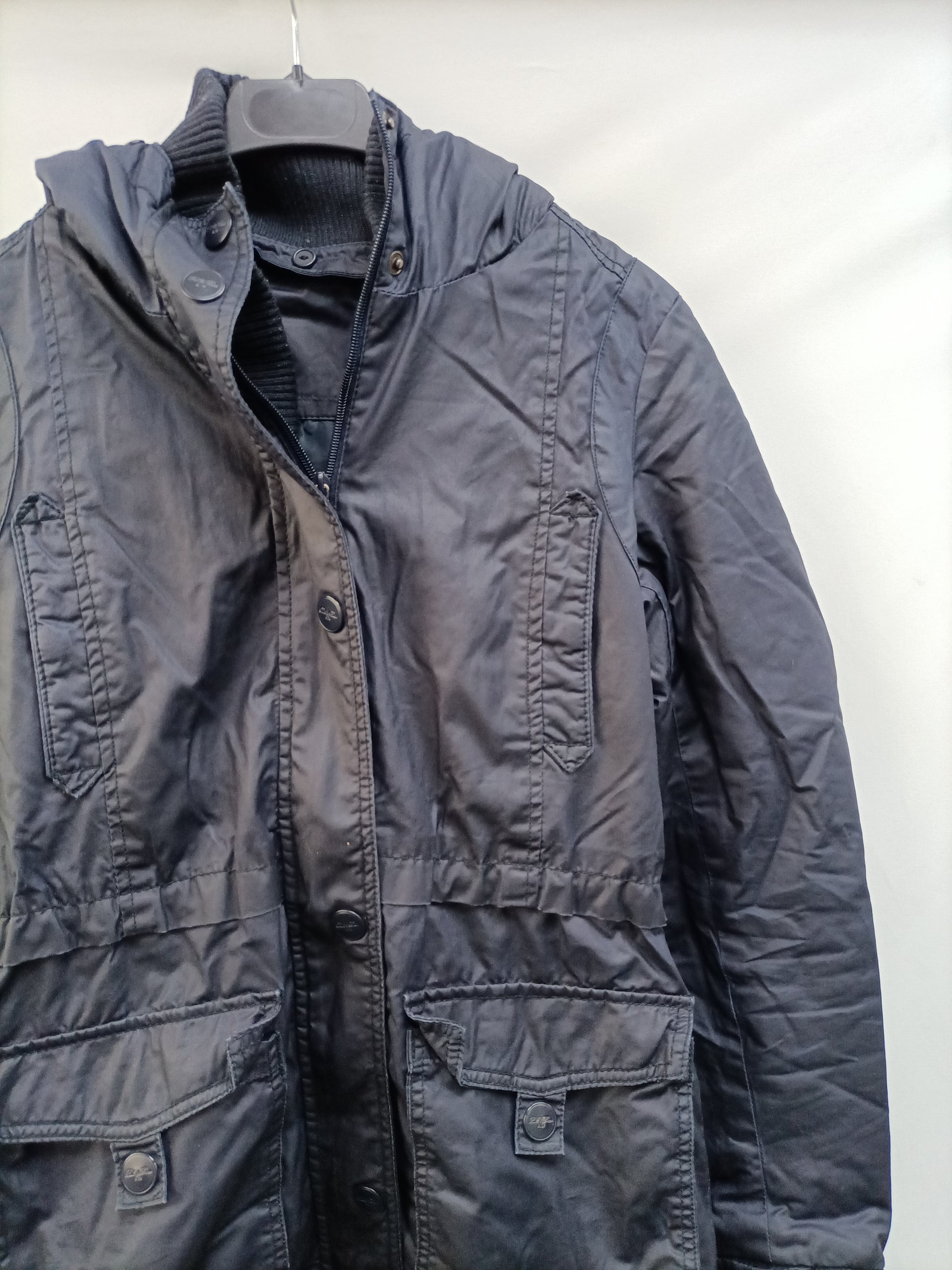Parka azul impermeable. El cuello se quita. De sisa a sisa 43 cm largo 76 cm