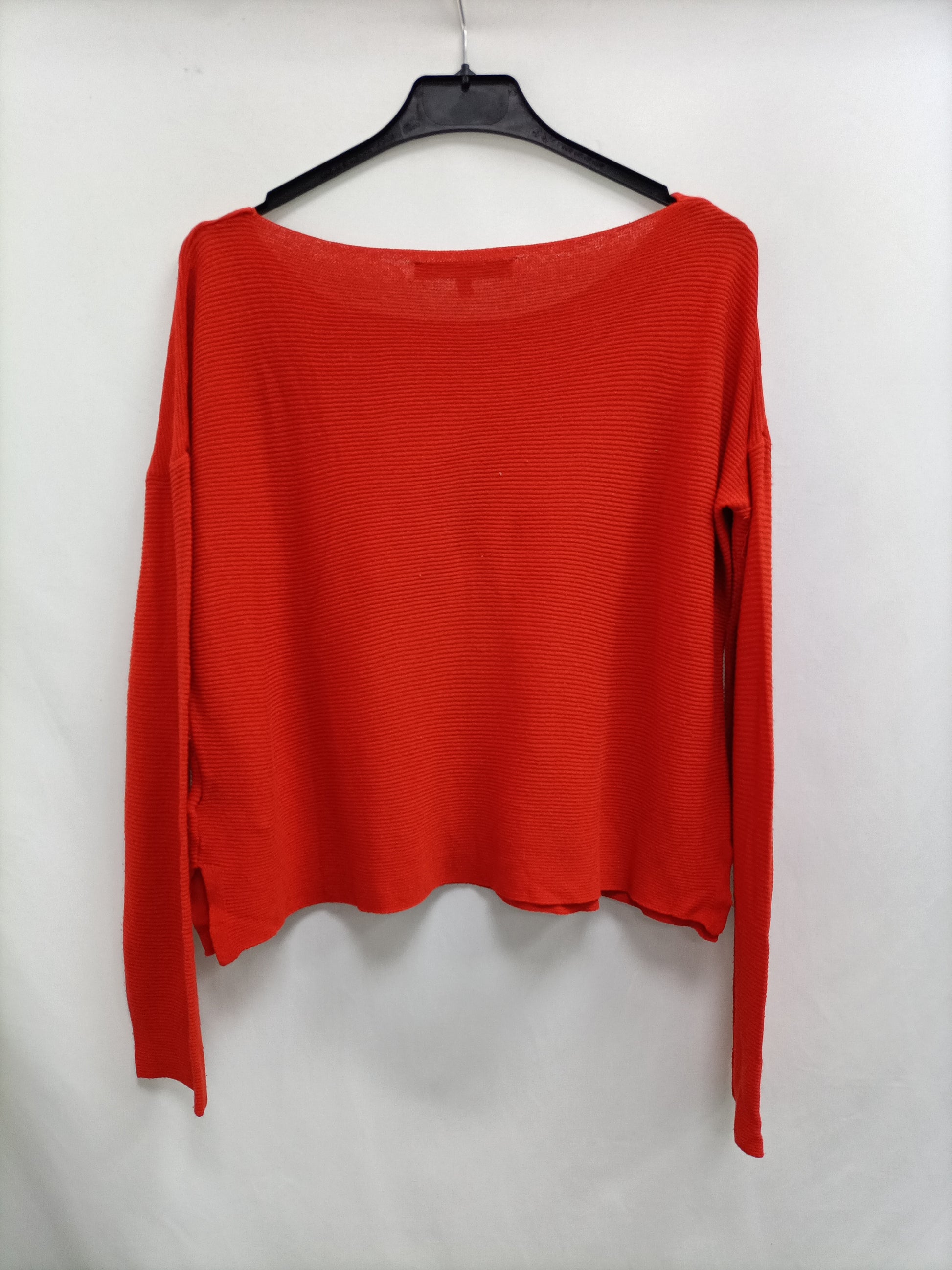 Jersey cortito rojo de canalé. Largo 37 cm