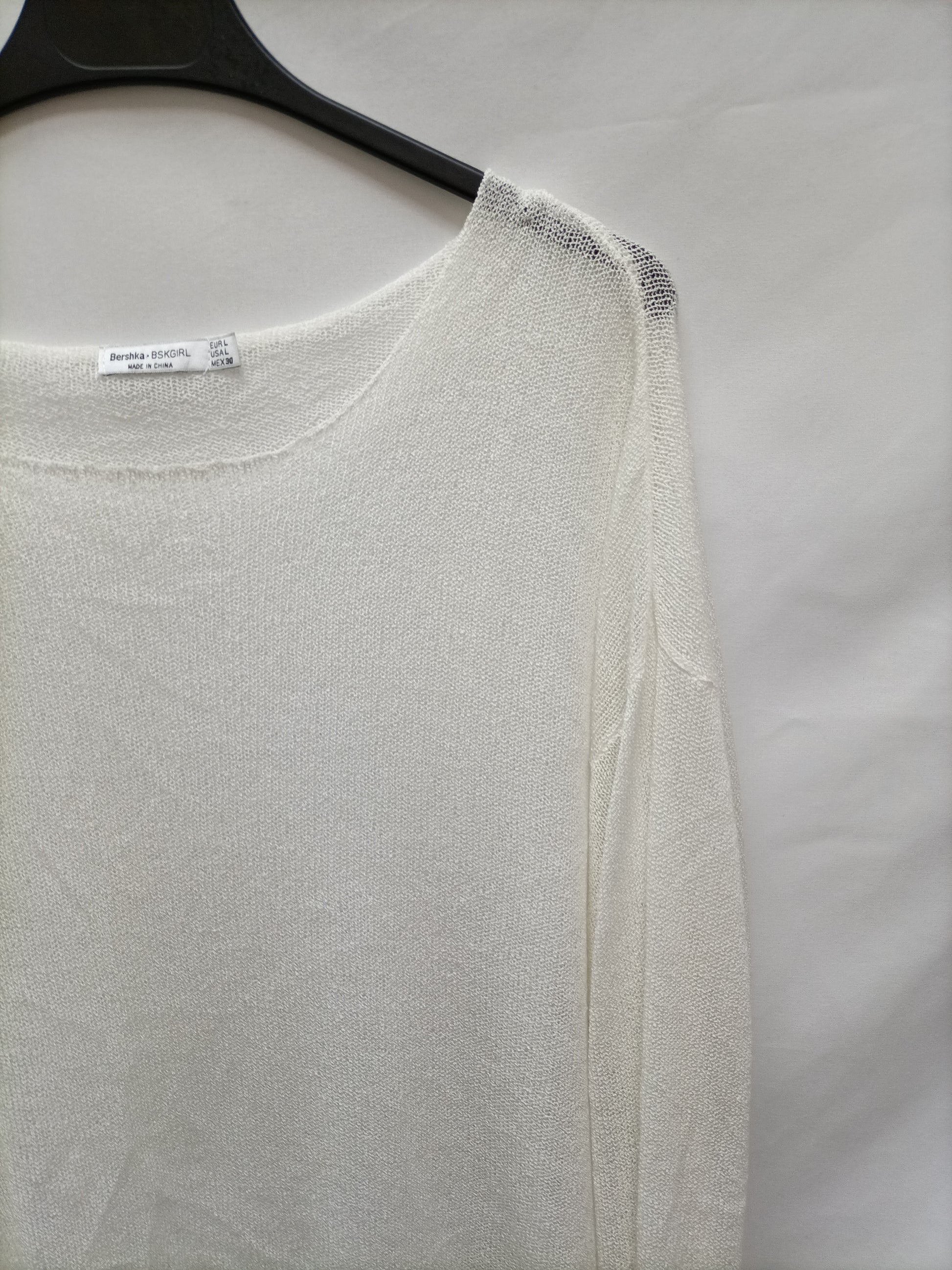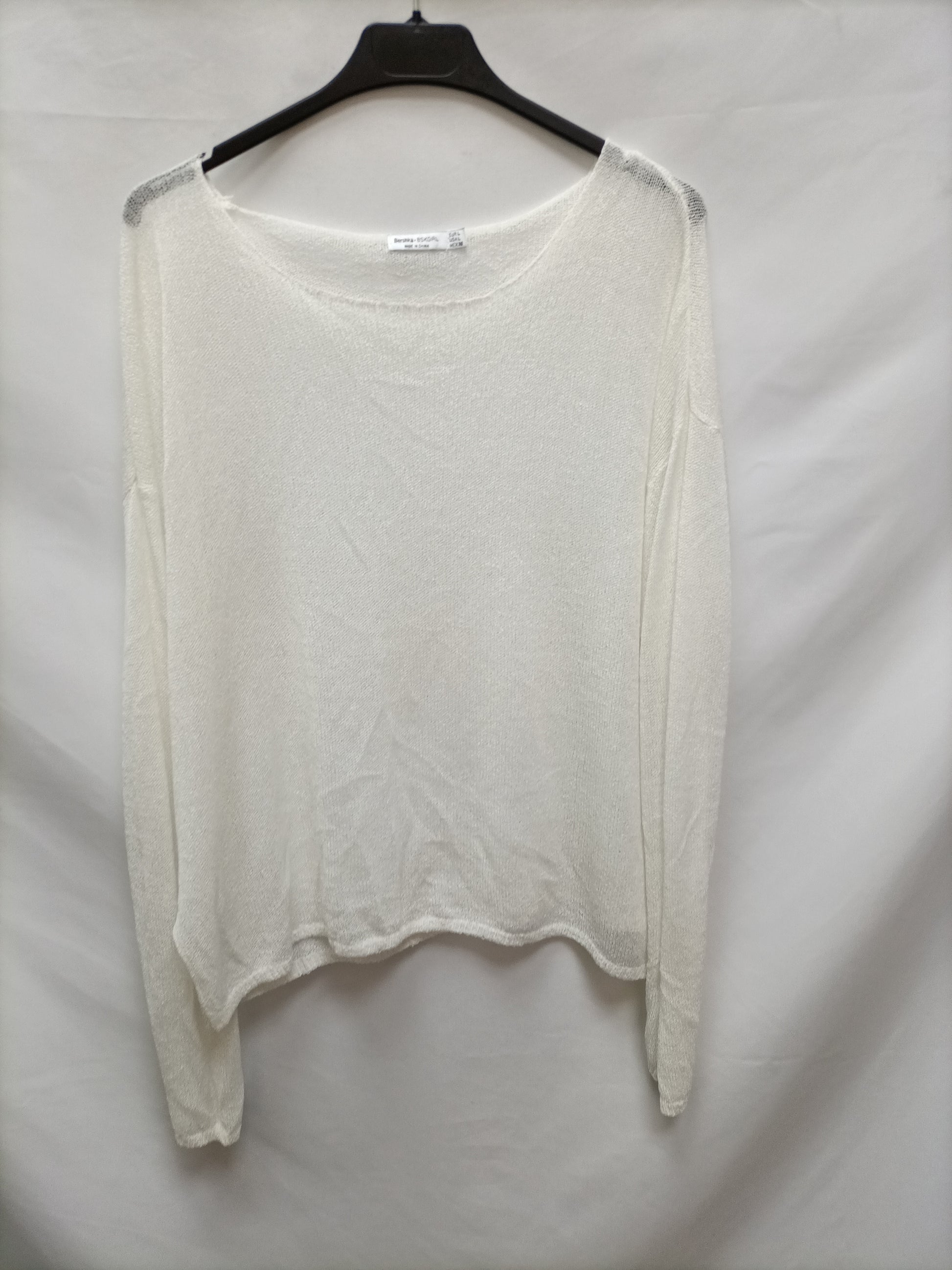Jersey finito blanco roto fluido y elastico. Largo 58 cm