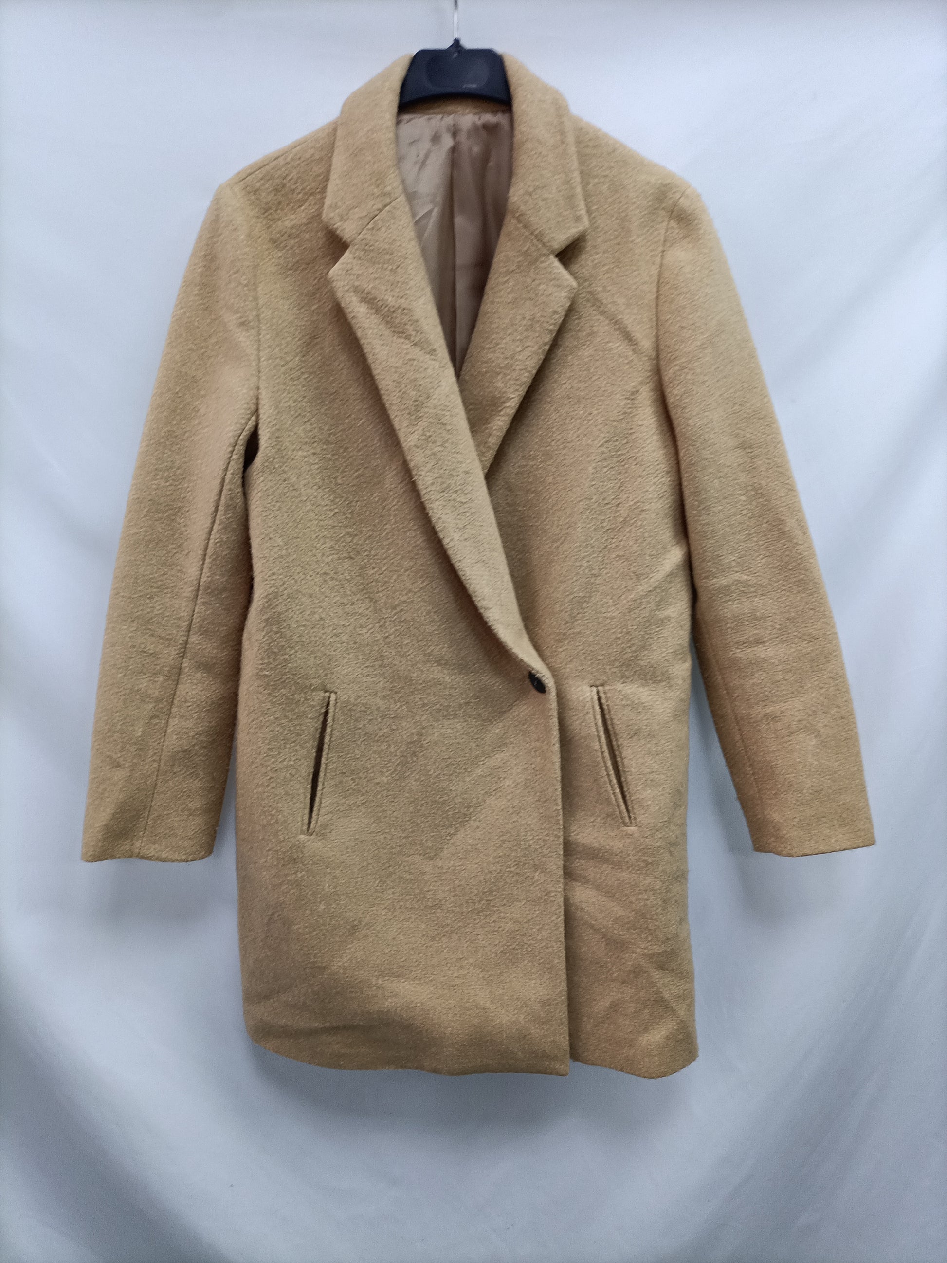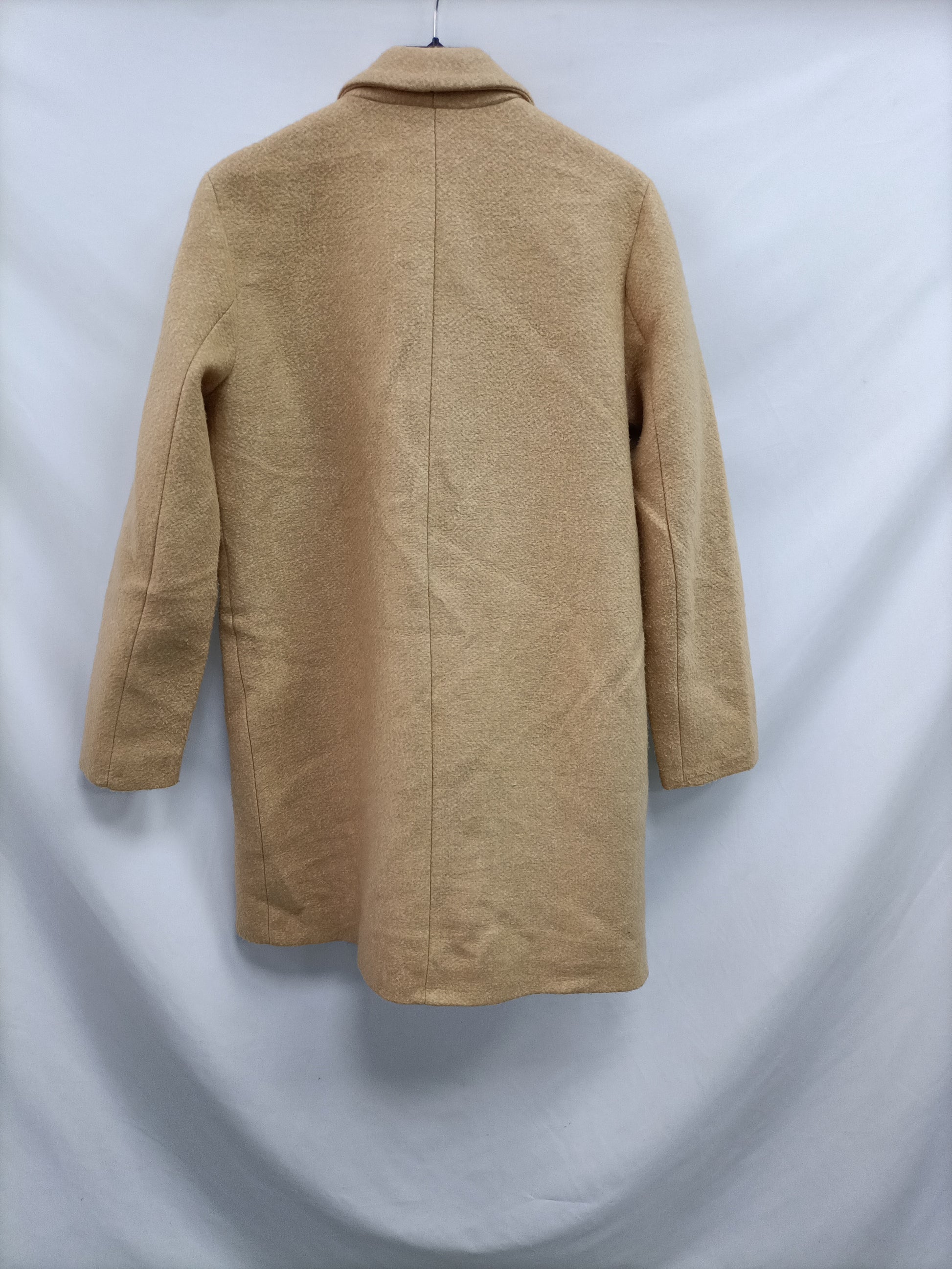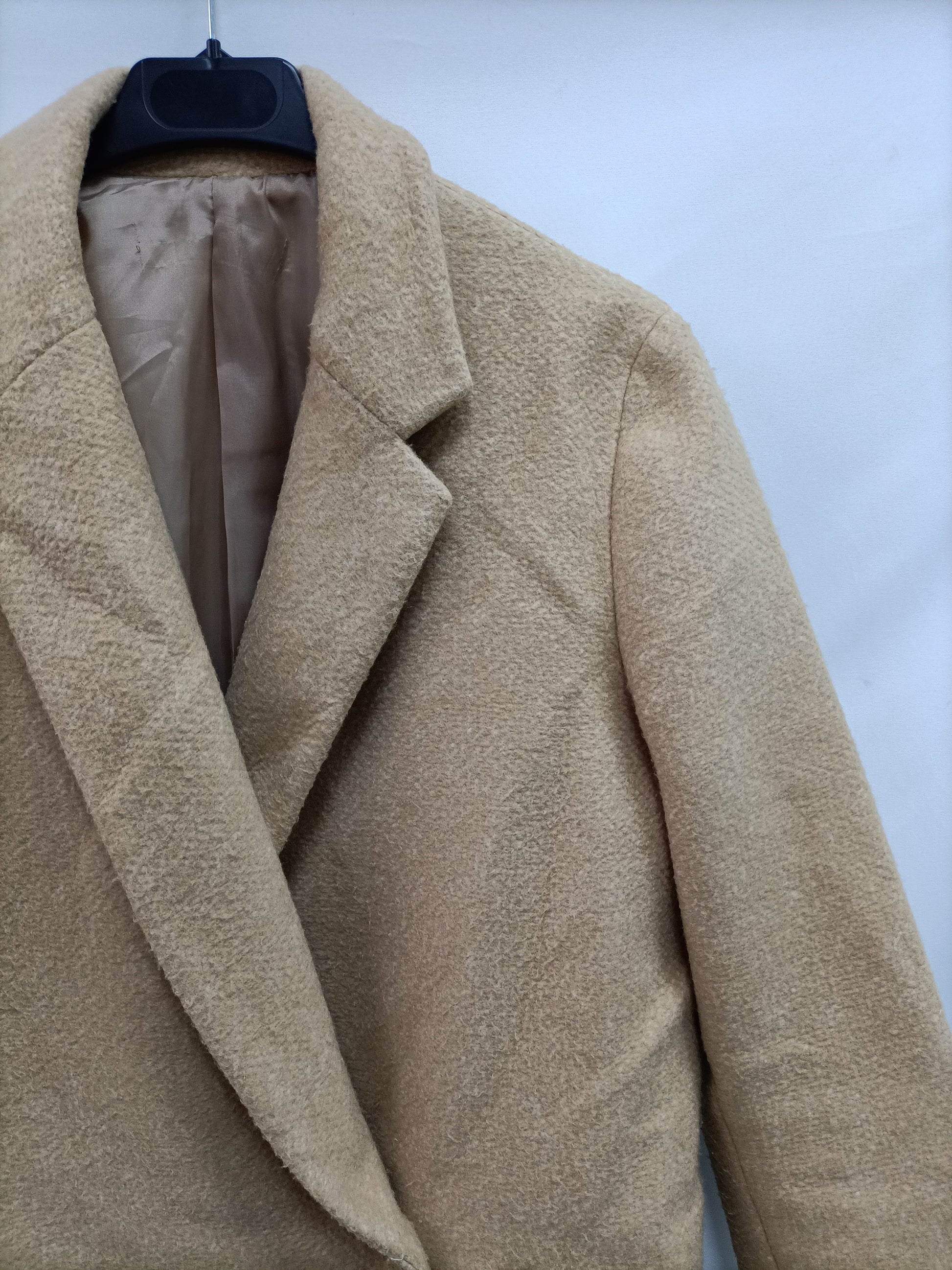 Abrigo de paño beige mostaza cruzado. De sisa a sisa 51 cm largo 91 cm