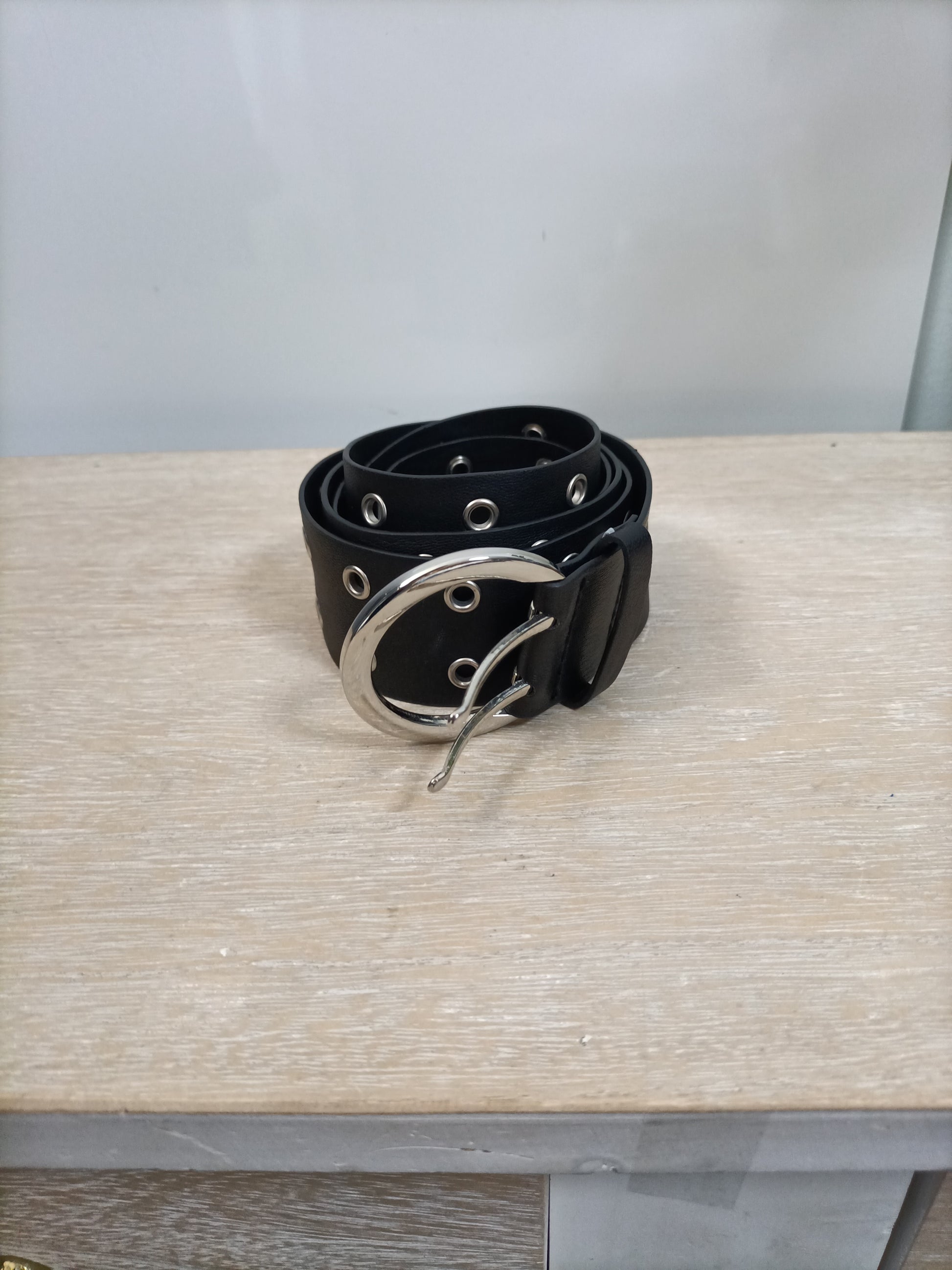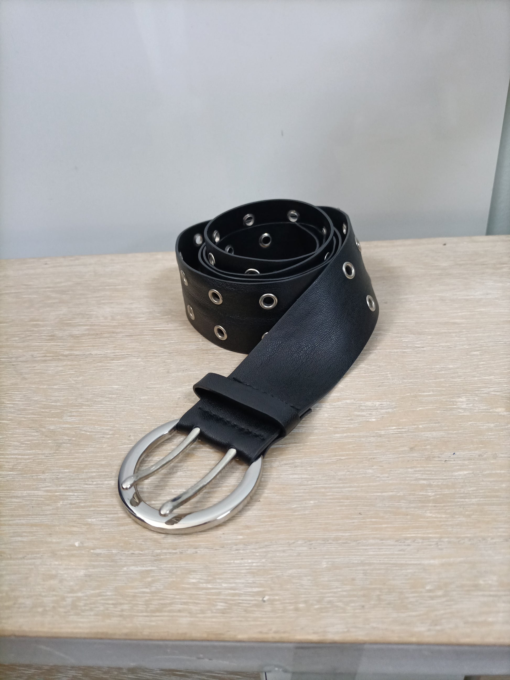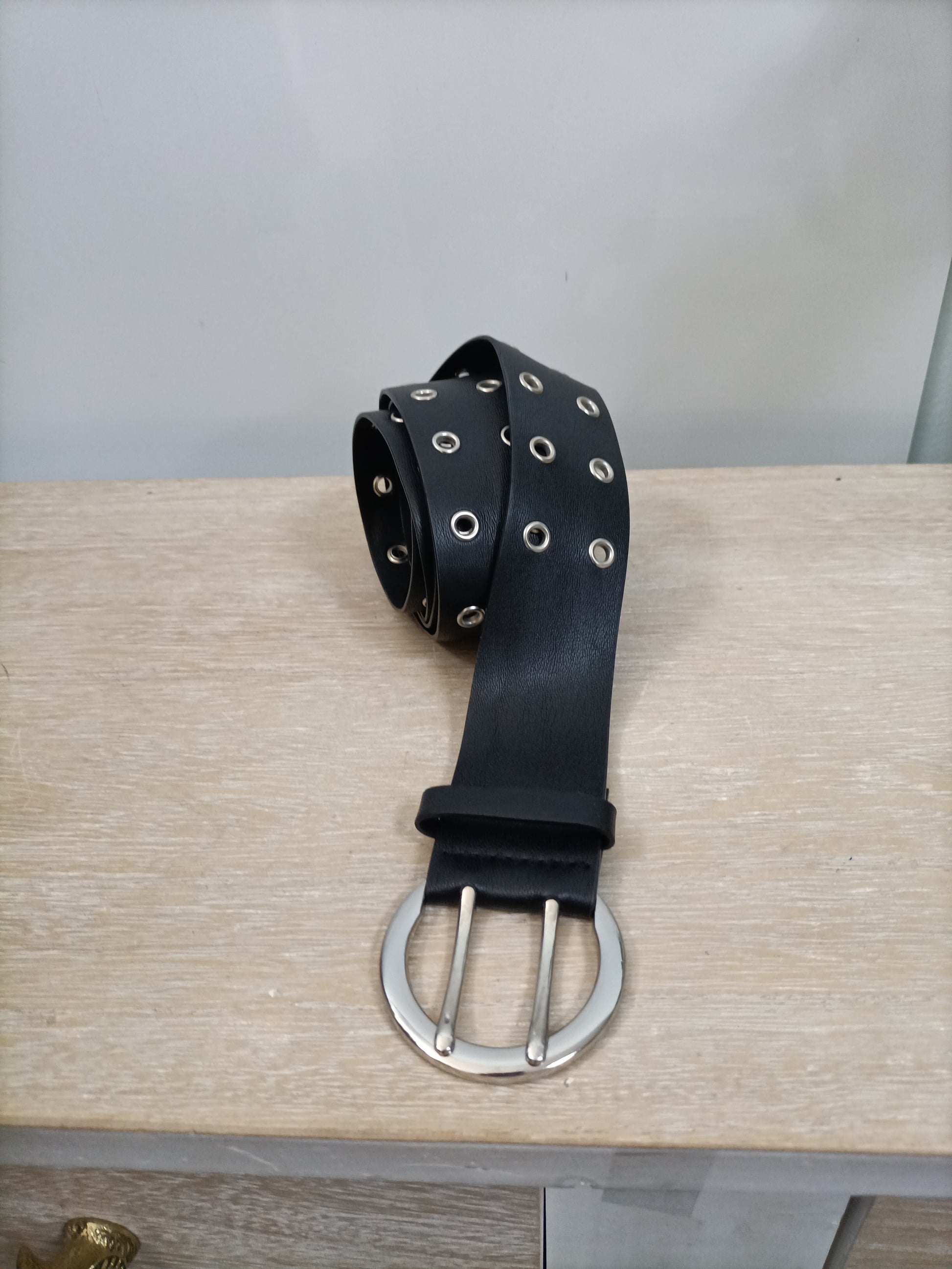 Cinturón negro con tachuelas plateadas muy largo para poner doble