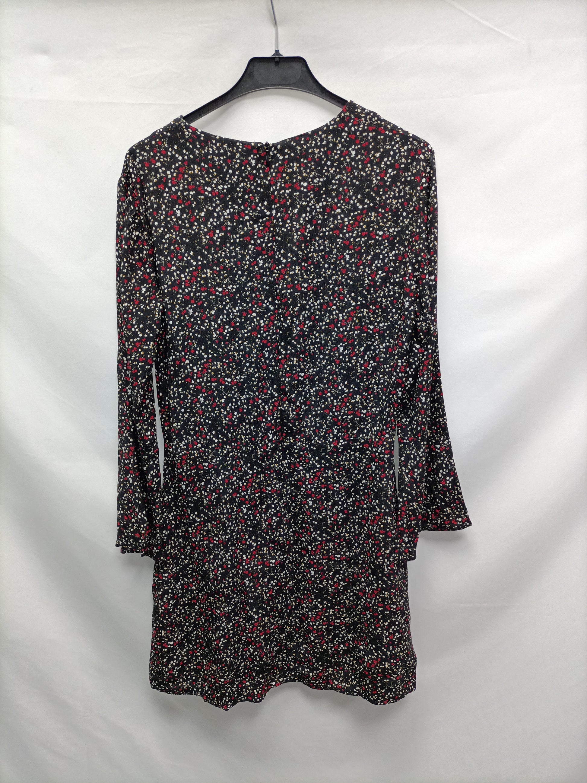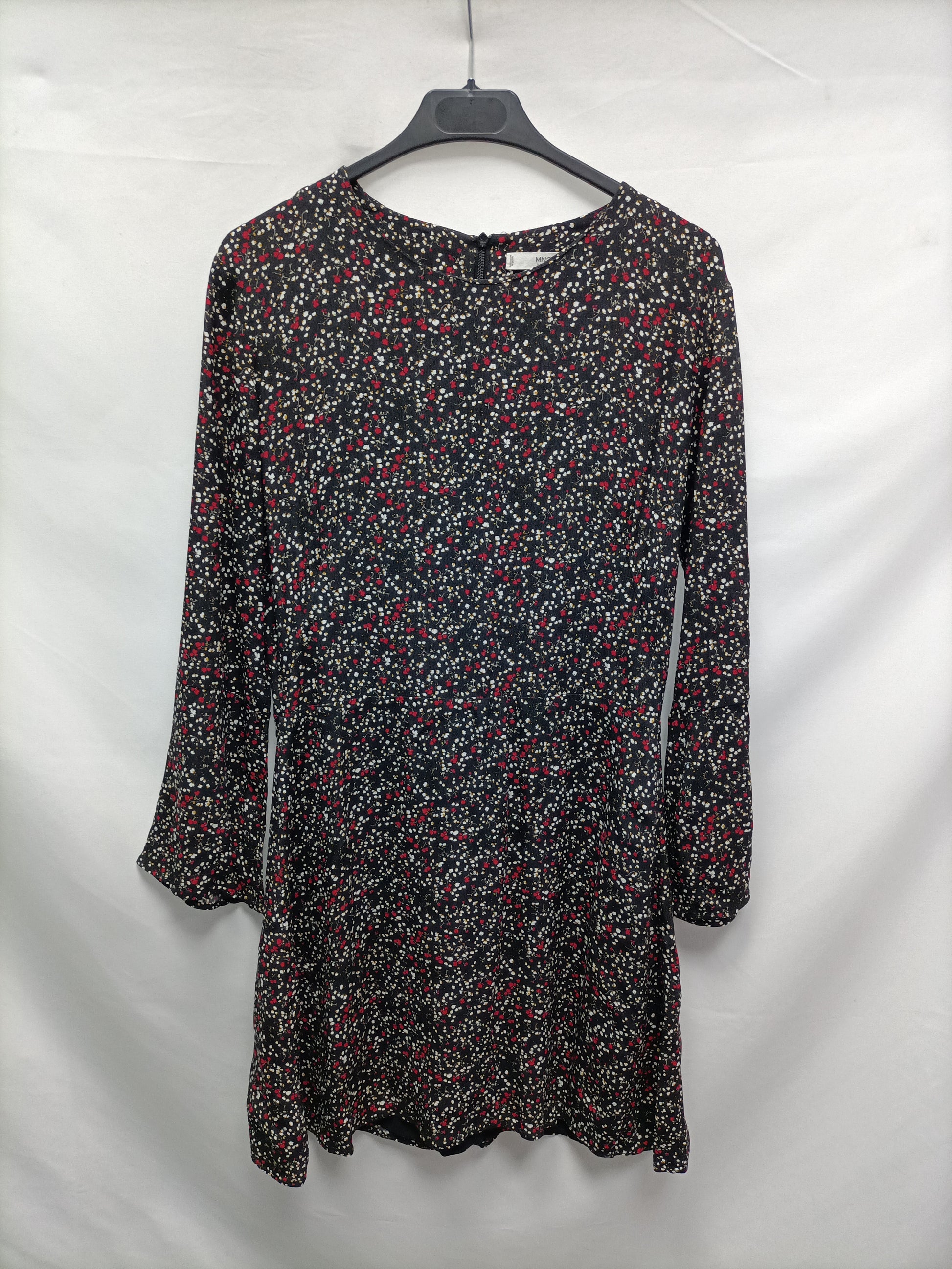 MANGO. Vestido negros florecitas T.m