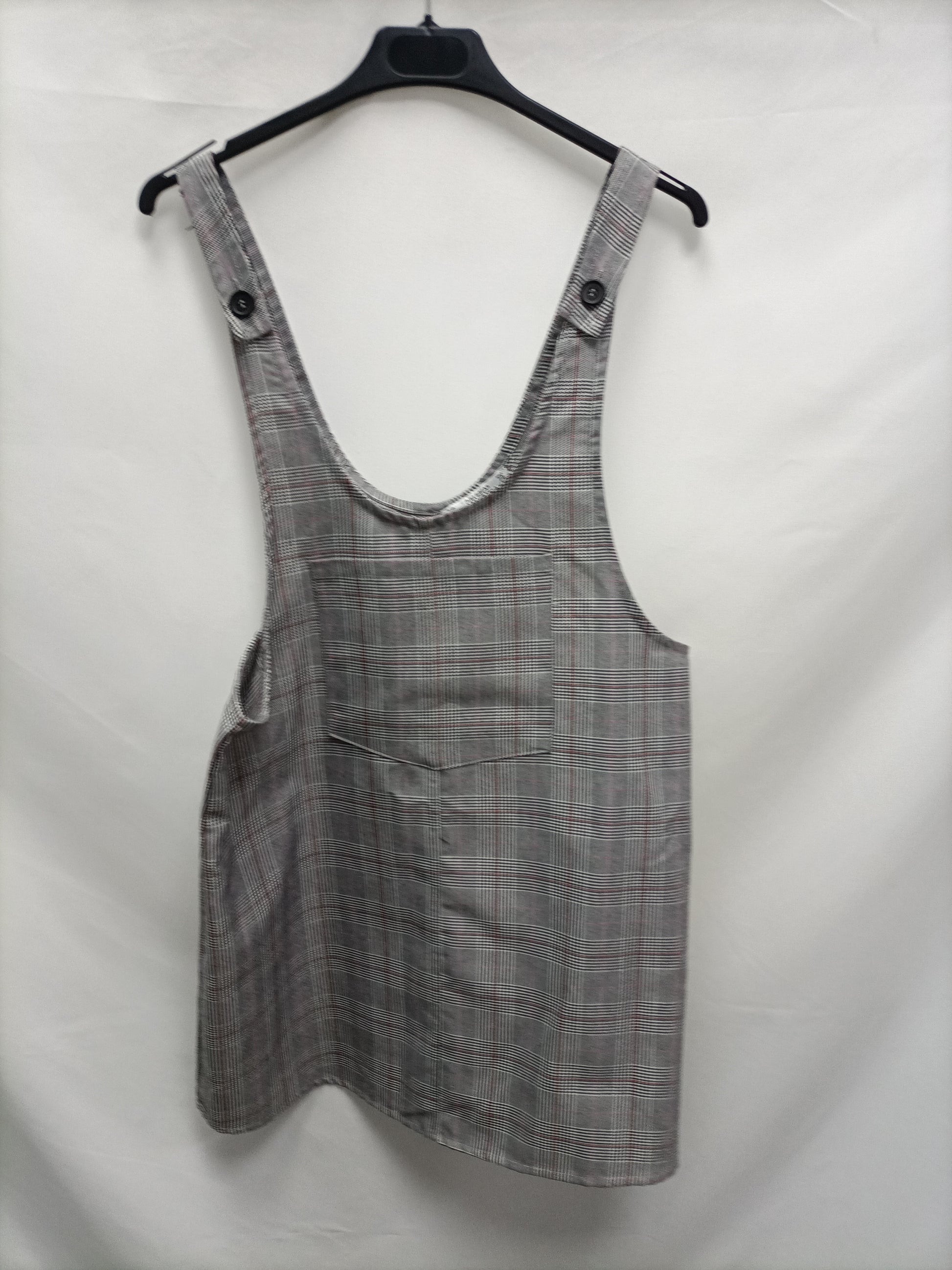 Vestido corto estilo pichi de cuadros en tono gris. Largo 78 cm