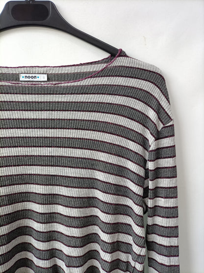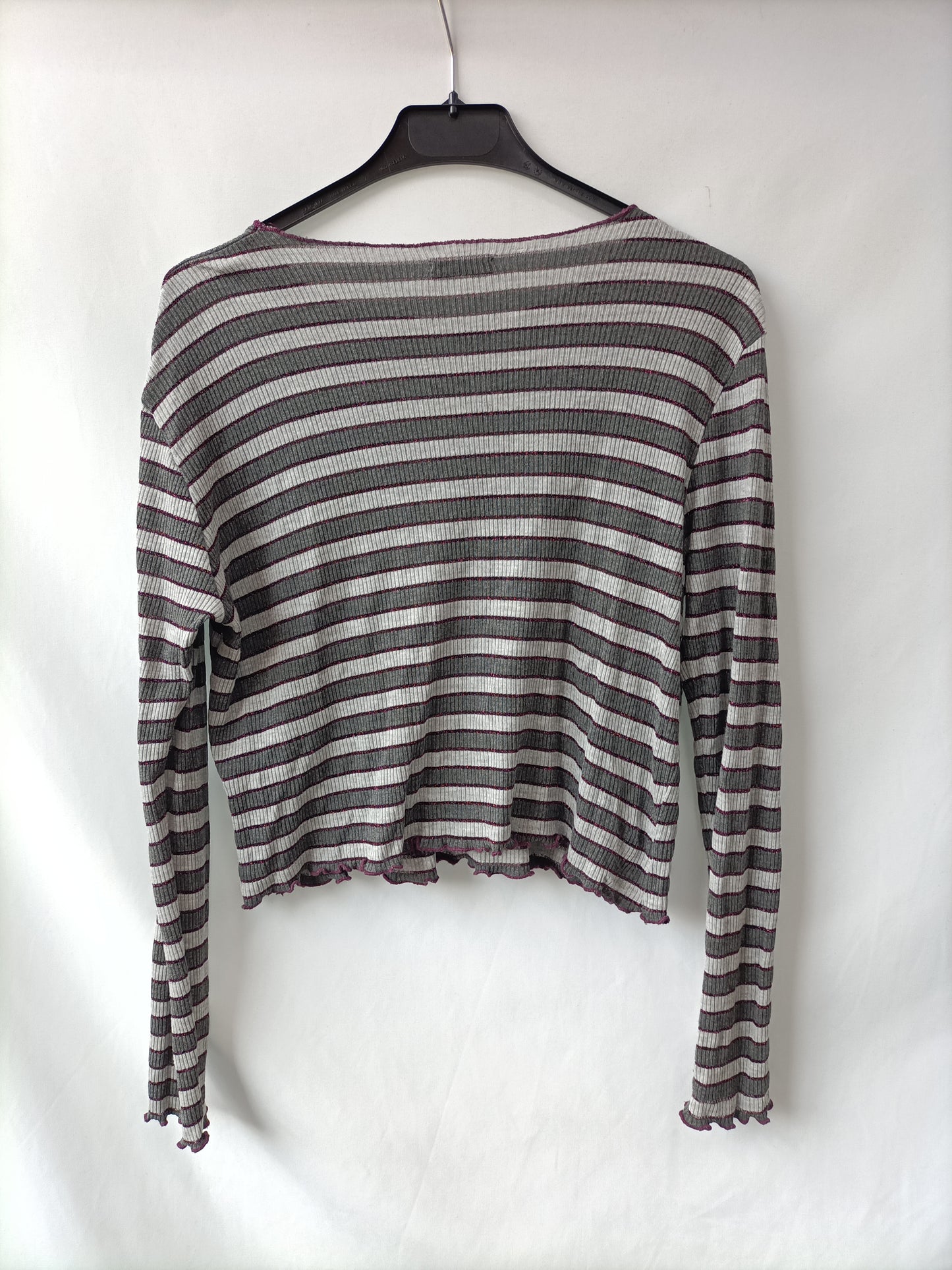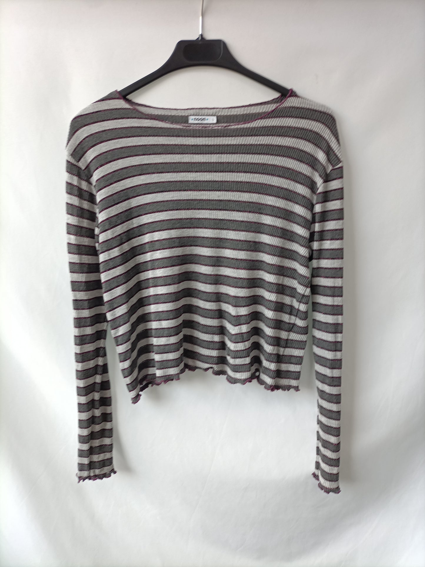 Camiseta rayas grises. Largo 41 cm. TARA: tiene un mini agujerito en el cuello