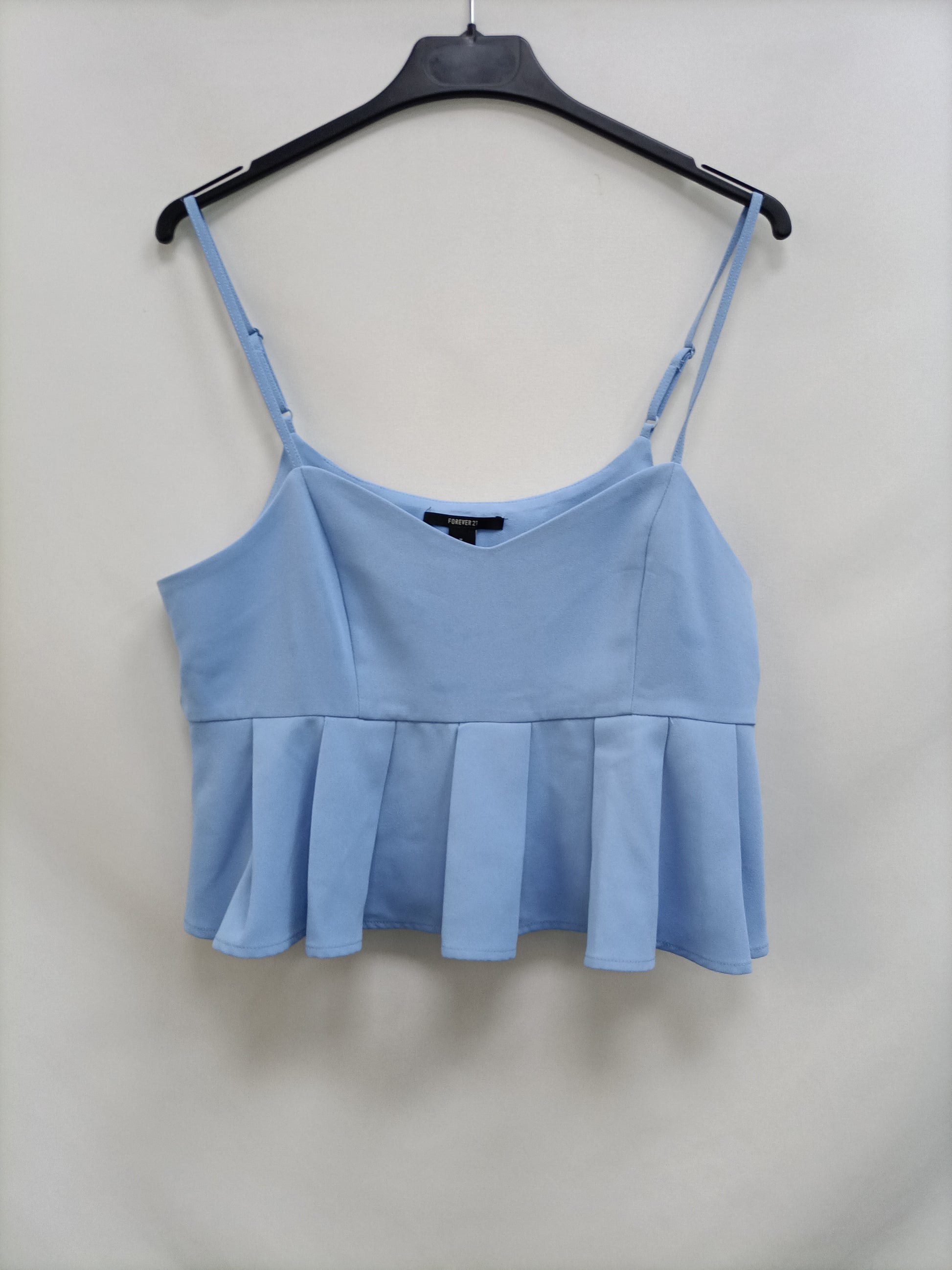 Top azul de tablas. Tirantes ajustables. No elástico. De sisa a sisa 43 cm largo 47 cm.