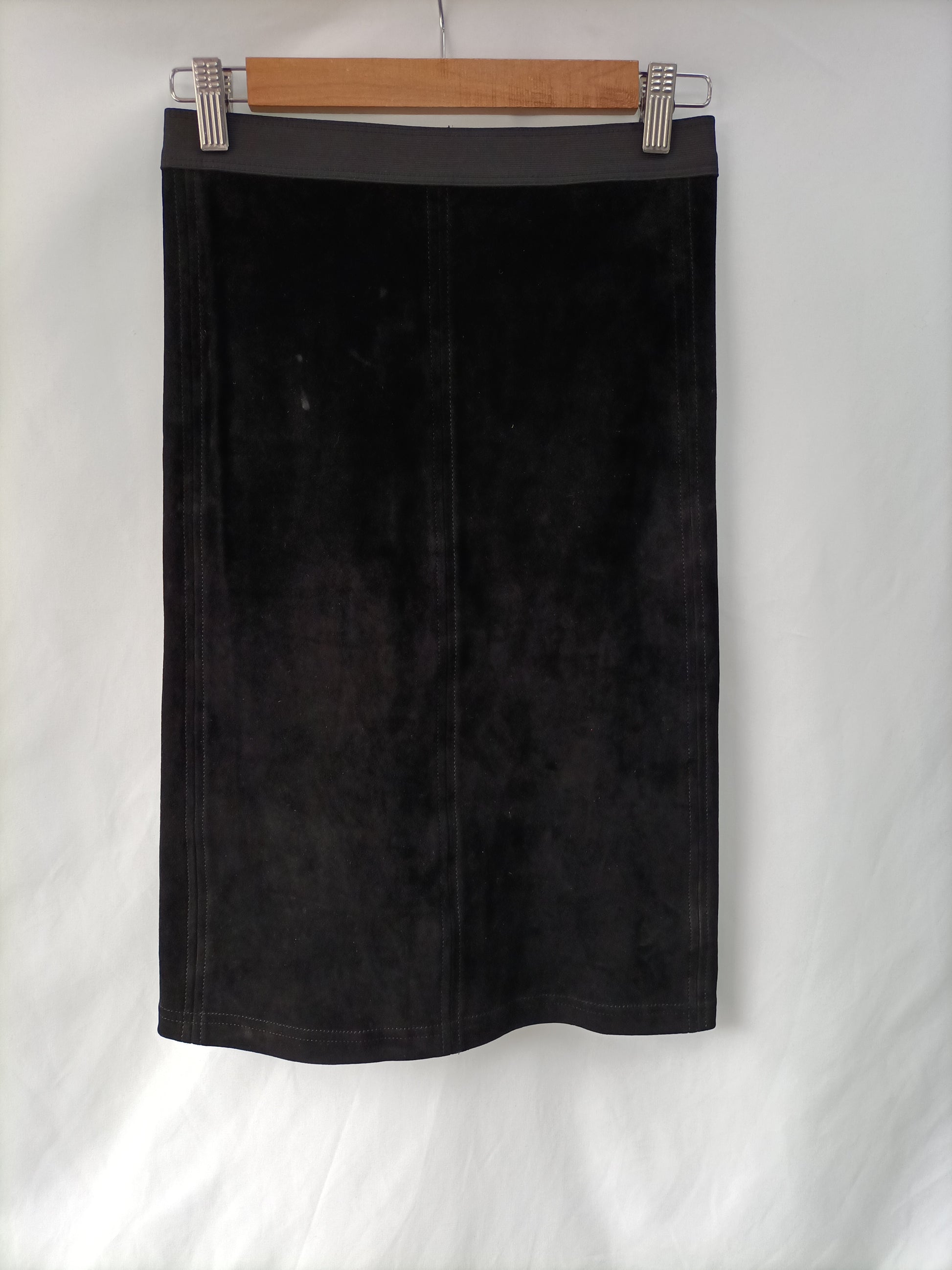Falda ajustada de piel negra. Cintura elástico. Cintura 34 cm largo 59 cm