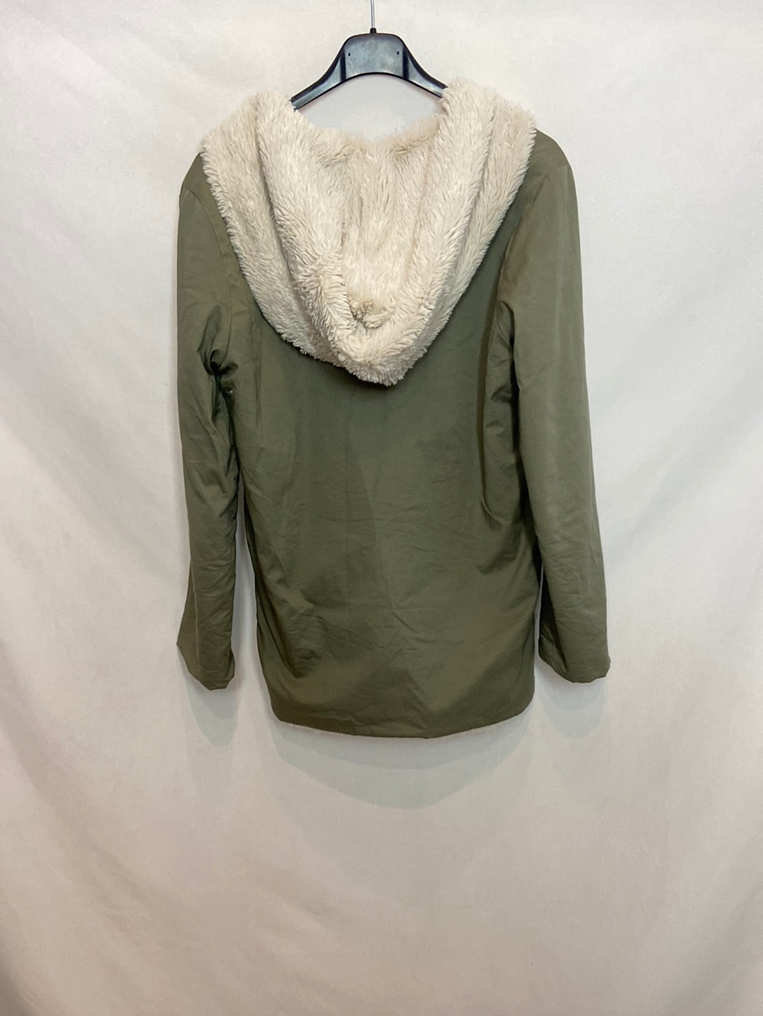 Abrigo verde con forro interior de pelo.