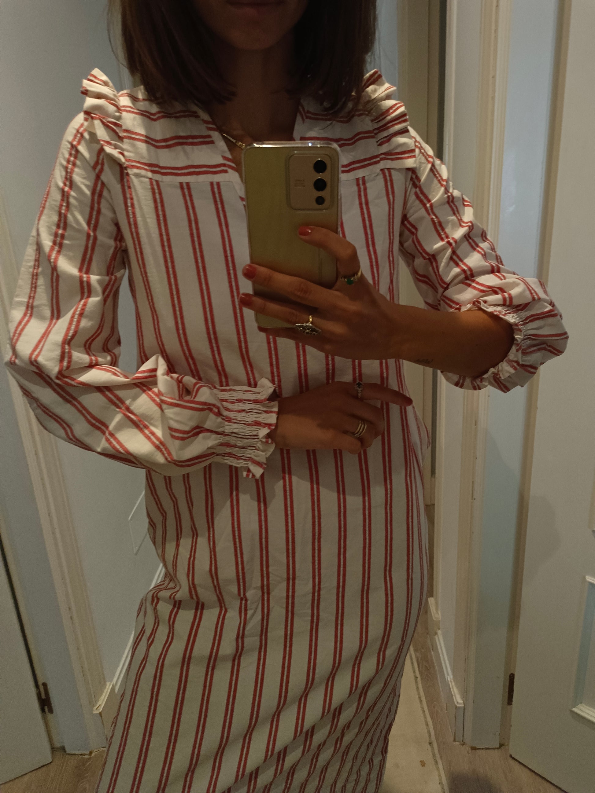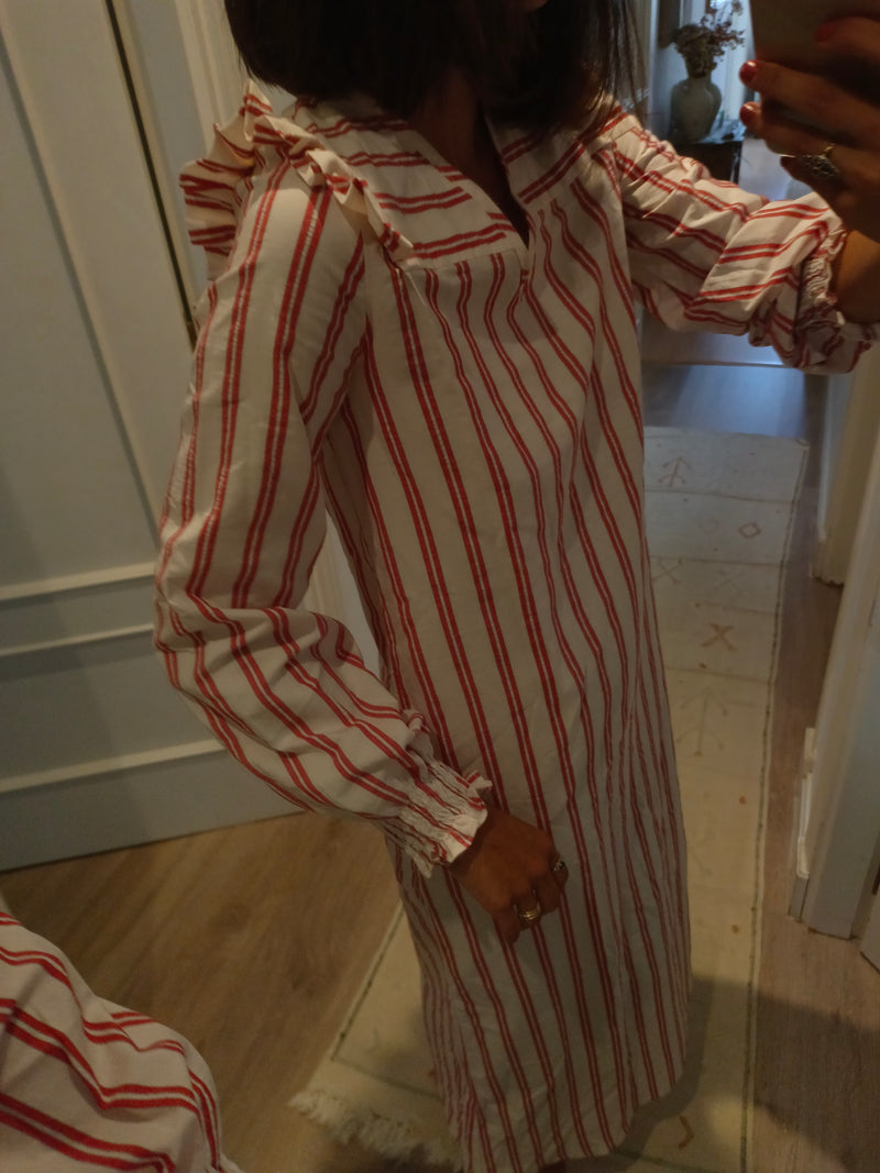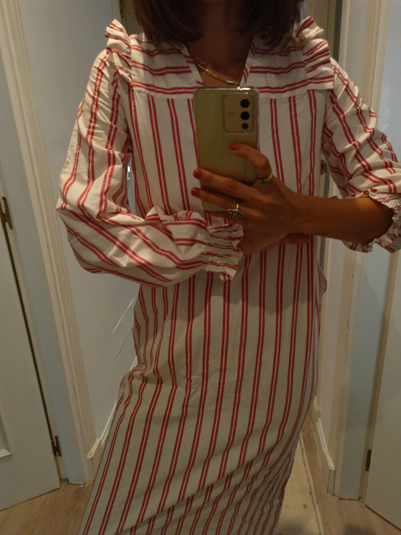 Vestido largo rayas con volante en los hombros