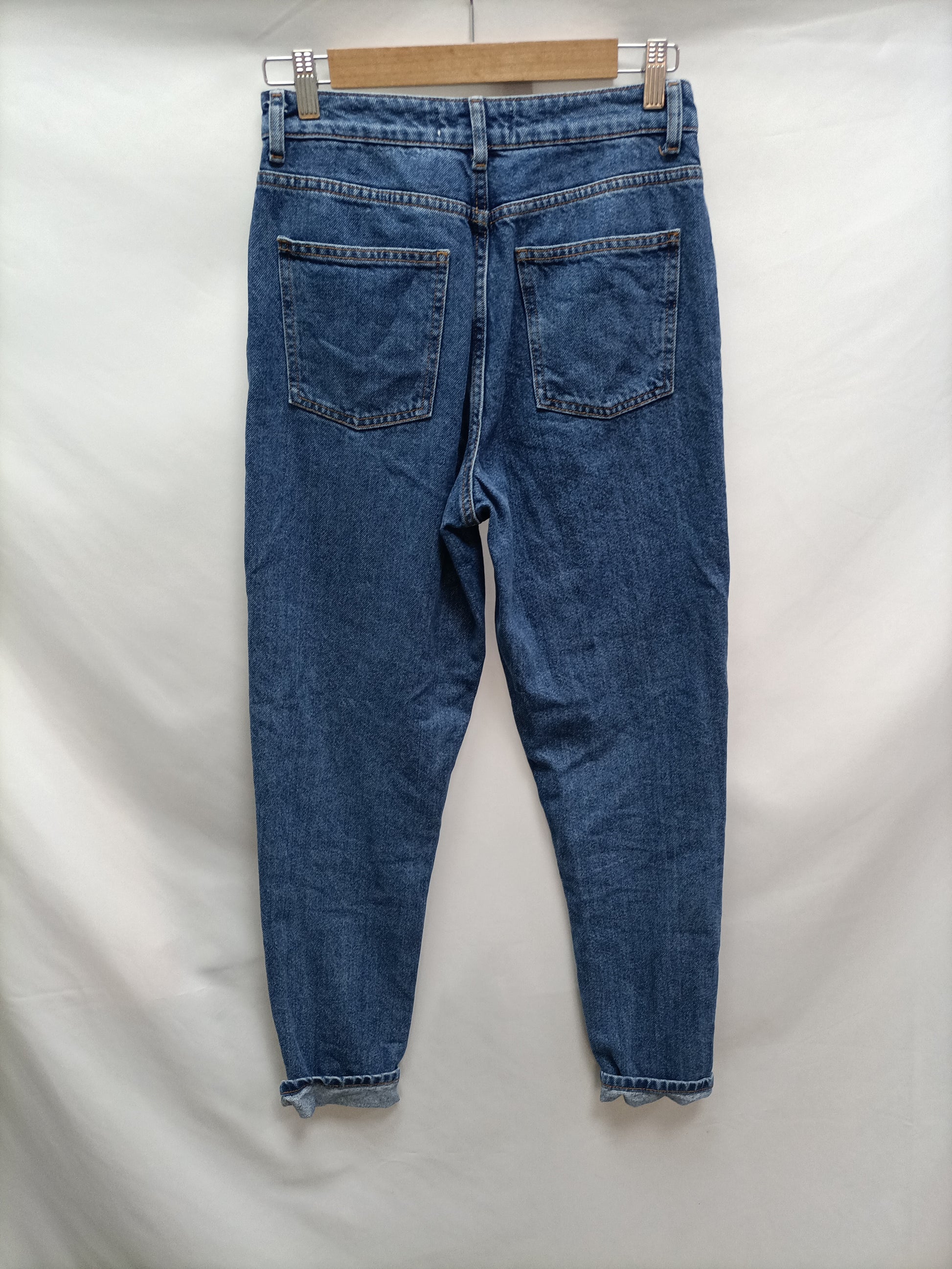 Pantalón vaquero estilo momfit. No elástico alto de cintura. Cintura 36 cm Largo 99 cm