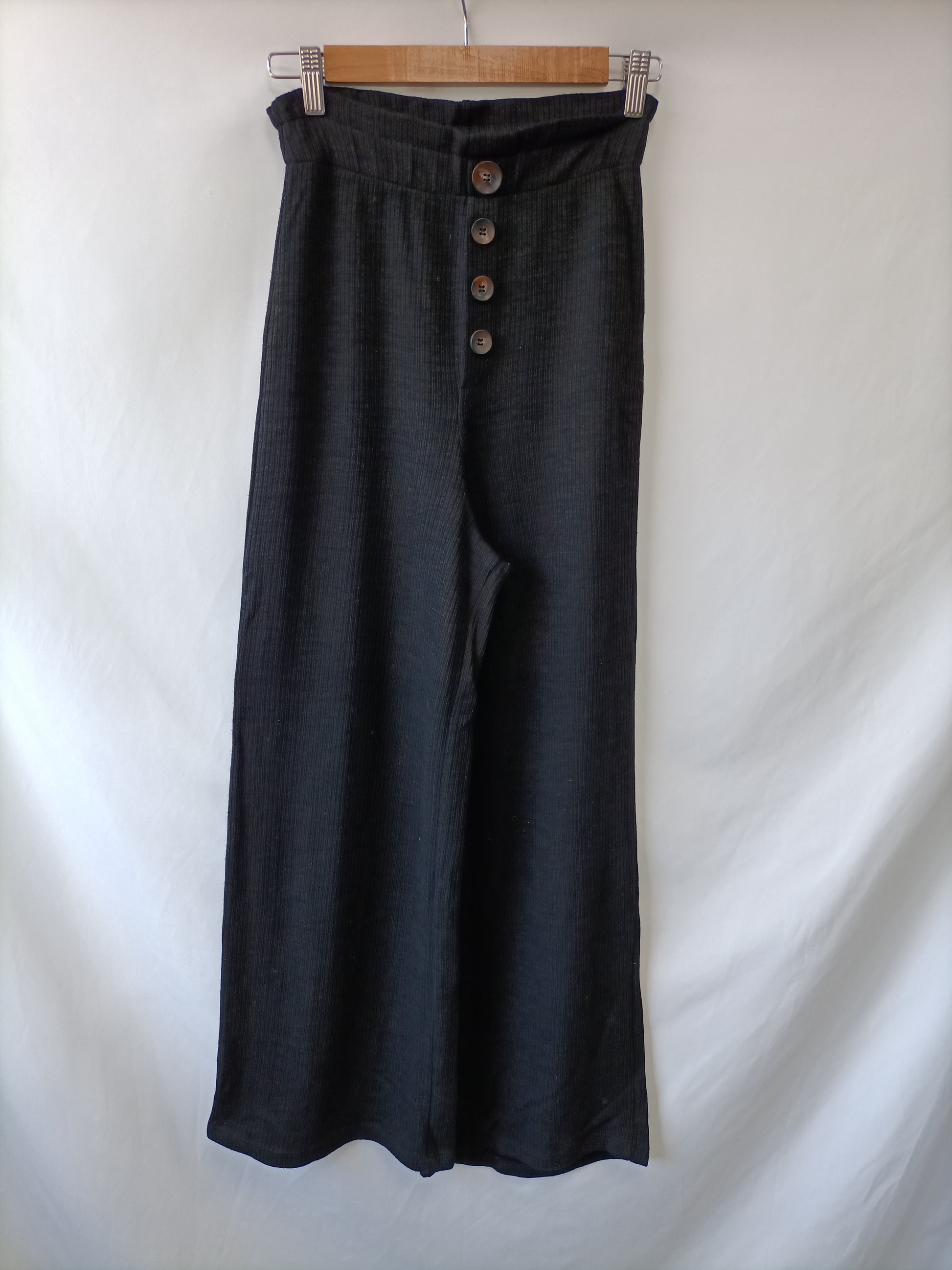 Pantalón culotte de punto de canalé negro. Elastico y Fluido con botones de nácar de adorno. largo 102 cm