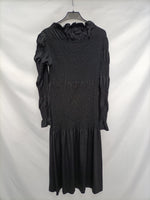 Vestido largo negro de nido de abeja. Elastico y ajustado. Largo 127 cm