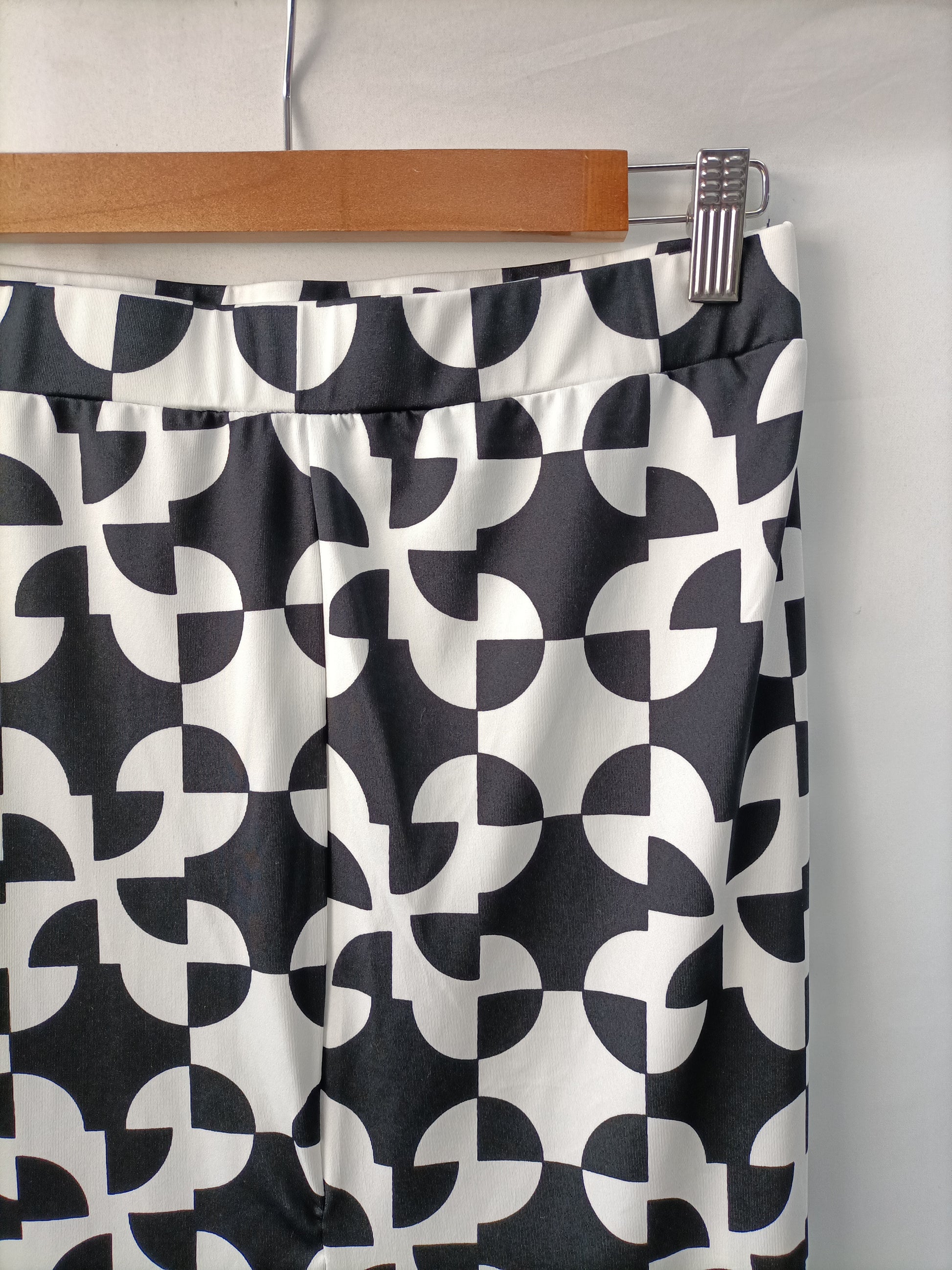 Falda midi negra y blanca elástica con apertura delantera. Largo 84 cm. Total look con top