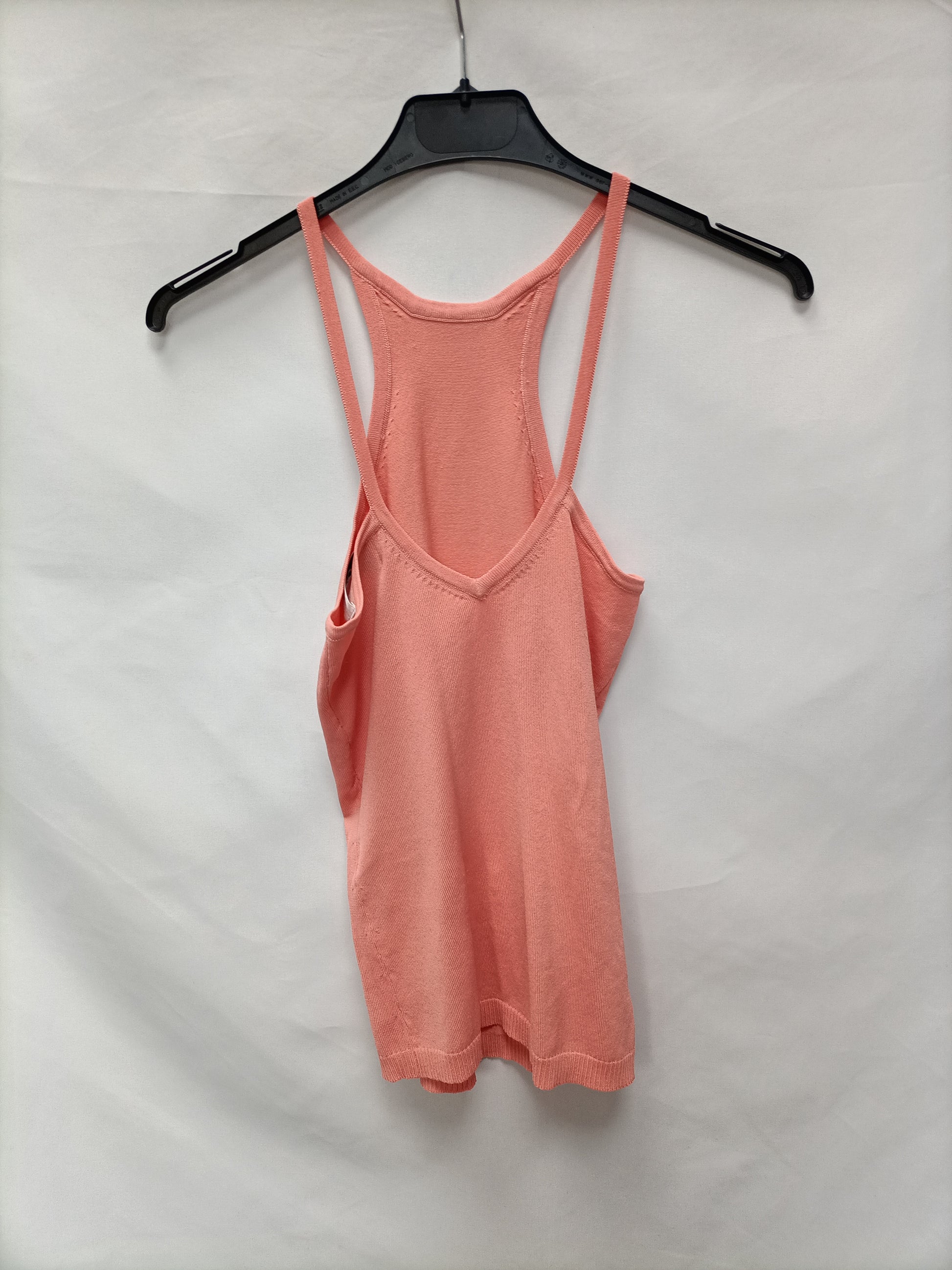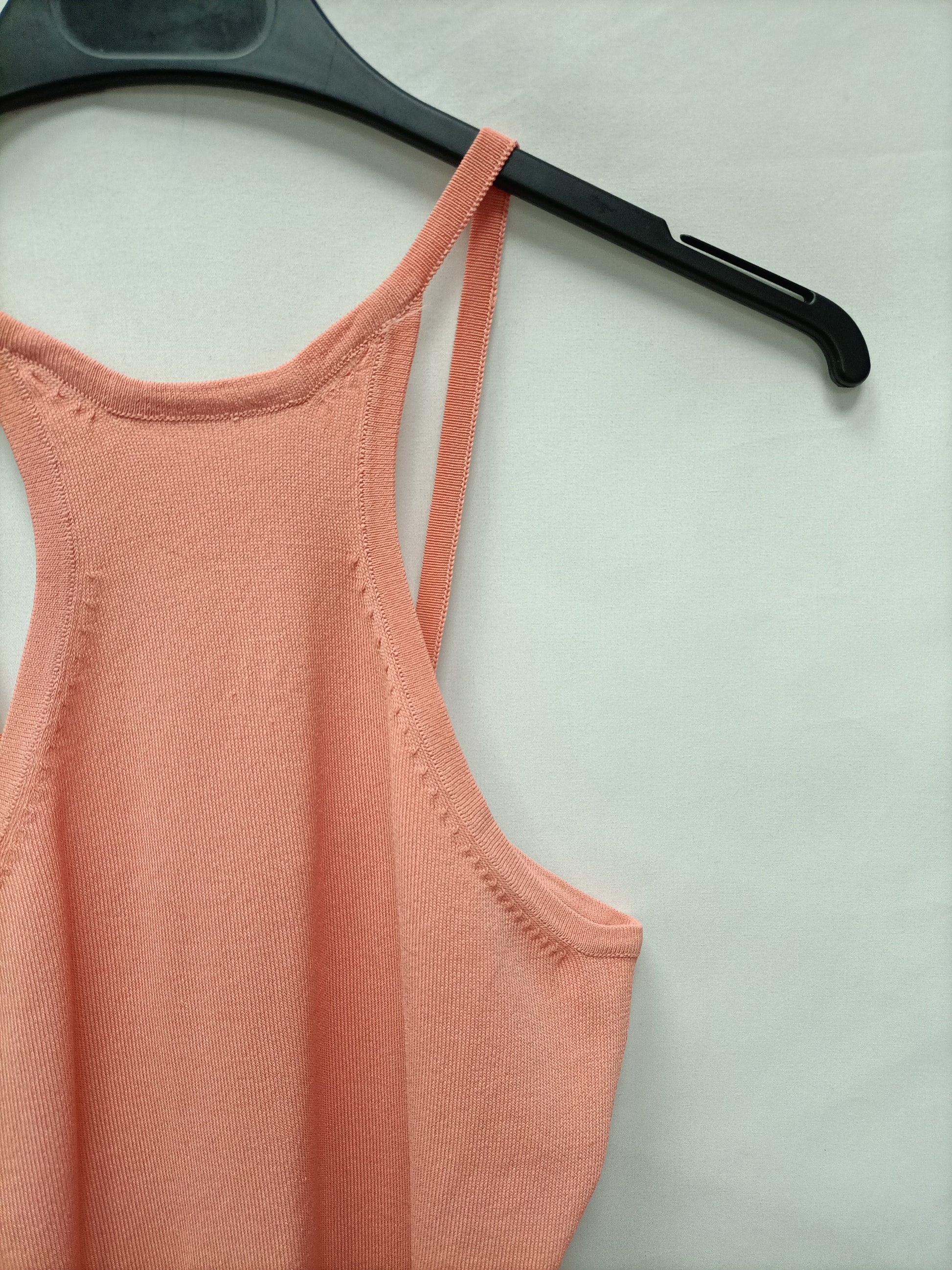 Top Elastico naranja palo con el escote halter. Ajustado. Elastico. Largo 58 cm