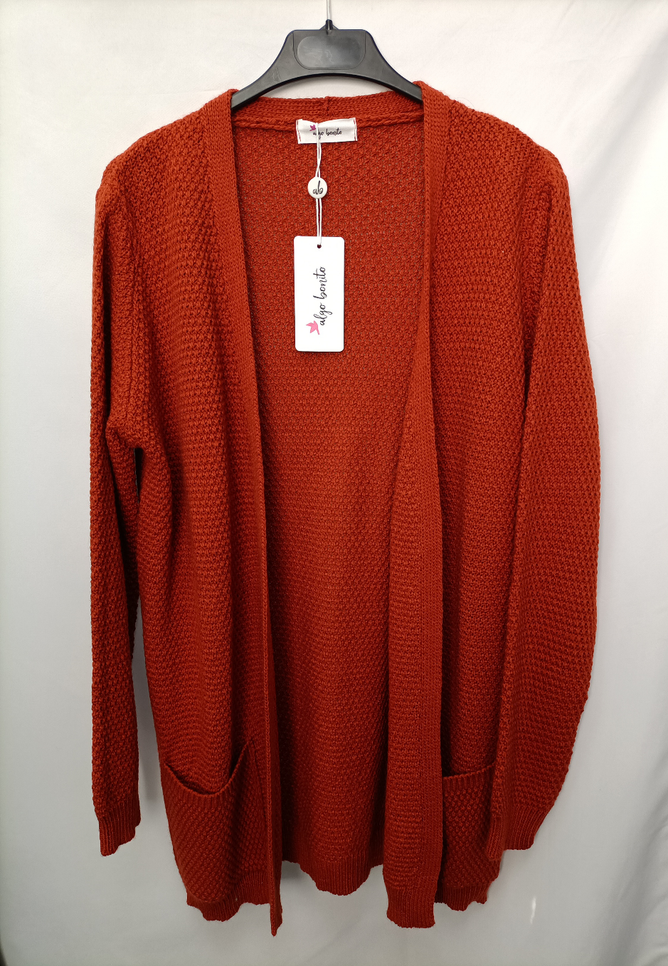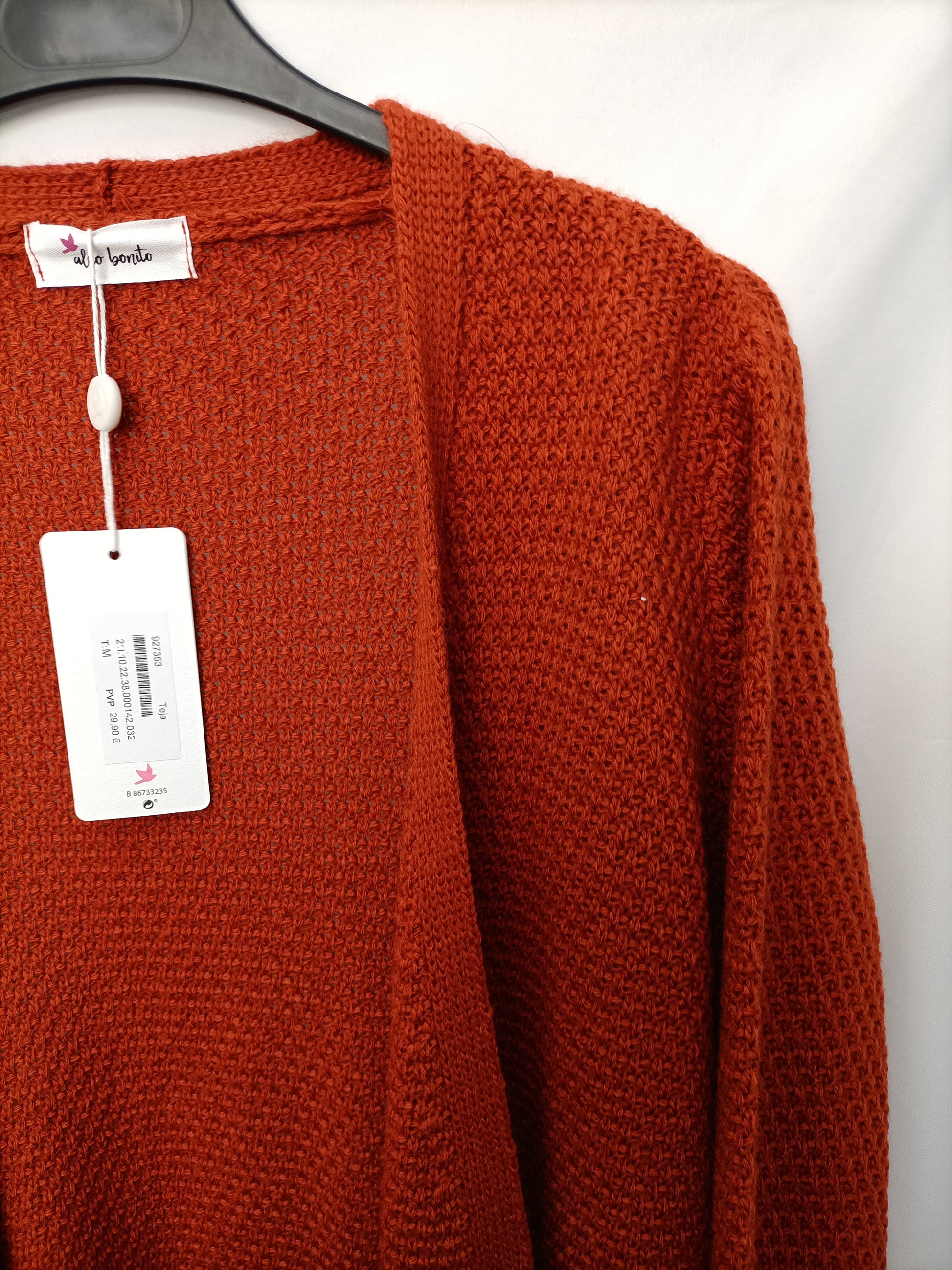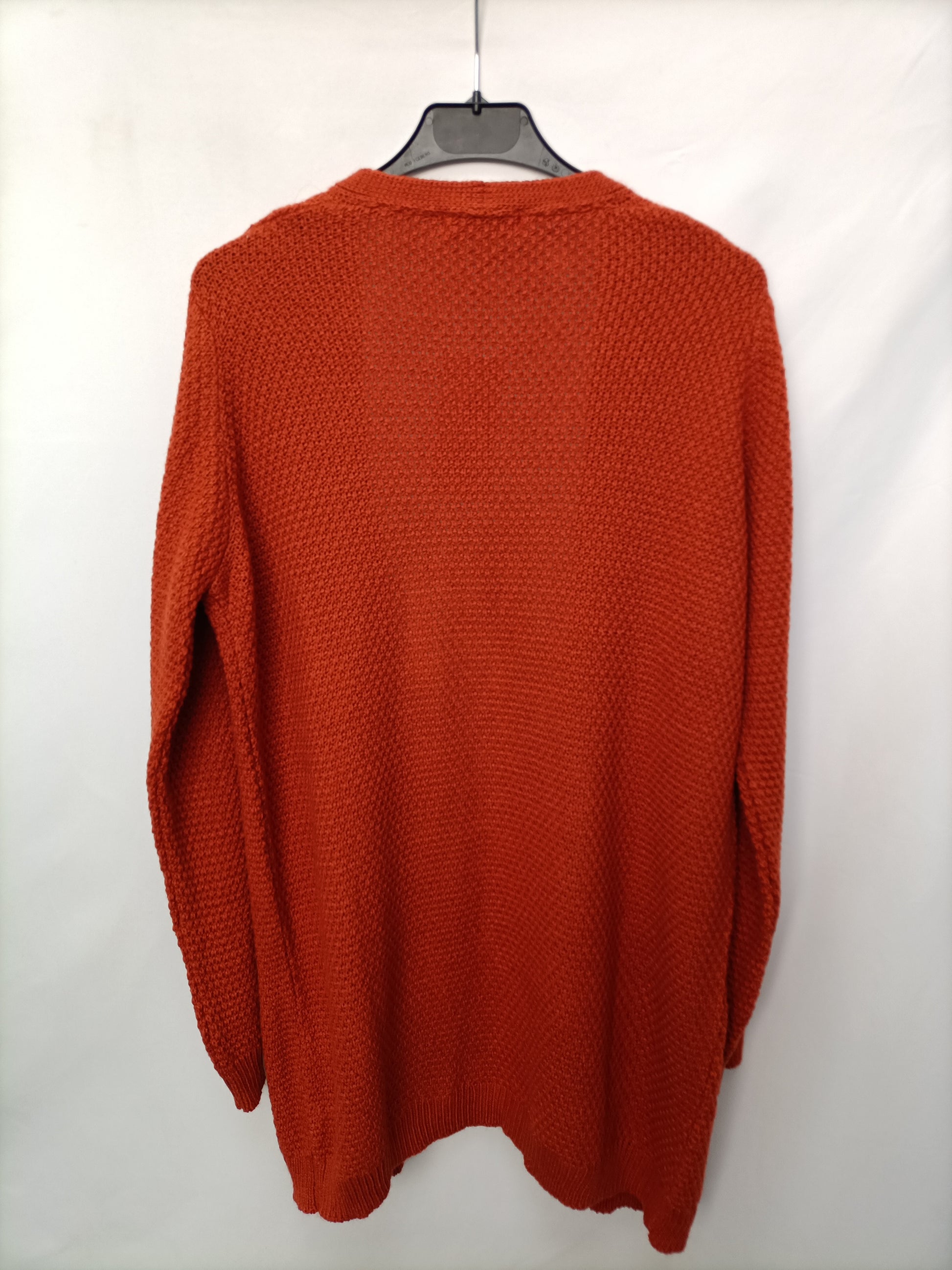 NUEVO CON ETIQUETA. Cárdigan naranja apagado de punto elástico. No se abrocha. Largo 78 cm (29,90)